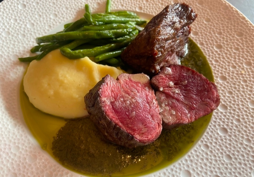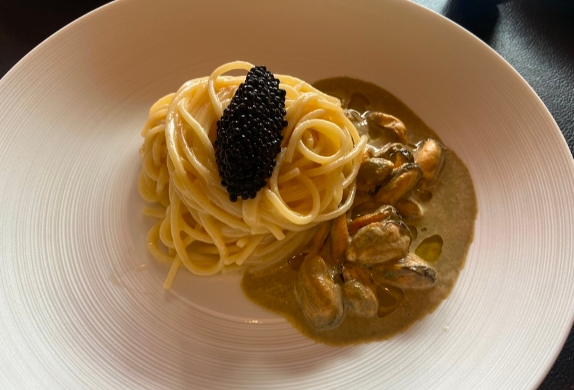 가자미구이는 가자미를 구워내고 아래 브뤼셀 스프라우트 (방울양배추)만 몇 개 얹고 뵈르 블랑 소스를 곁들였다는데, 우리말로 뵈르 블랑이지만 아마도 beurre-blanc 하얀 버터소스를 말하는 거 같았다. 버터와 화이트와인으로 맛을 낸 것 같은 부드러운 소스와 가자미가 잘 어울렸다. 요란하지 않은 게 맘에 들었다. 송아지구이도 마찬가지였다. 크리미 한 매쉬드포테이토에 잘 익혀낸 그린빈, 그리고 허브소스와 미디엄레어로 아주 부드럽게 잘 익혀진 송아지고기였다. 고기는 정말 부드러웠고 간도 나에겐 딱이었다. 심플하지만 필요한 맛은 다 있어서 좋았다. 마지막 메뉴인 홍합 스파게티니는 홍합 소스가 처음 맛보는 맛이지만 크리미 하면서 진한 감칠맛이 좋았다. 캐비어는 무슨 맛인지 모르지만 올려줬으니 함께 먹었다. 캐비어의 존재가 그저 반가웠다.