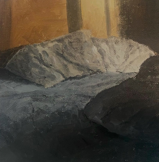 그래서 처음 이 그림의 레퍼런스 사진을 본 순간 맘에 들었다. 사진 속 침대를 비추는 햇살의 따스한 온기가 느껴지는 기분이었다. 그래서 선택한 사진이었고 그것을 그림으로 담았다. 나는 제법 맘에 들었던 그림이었다. 내가 원하던 따뜻함이 담아진 것 같아서 머리맡에 그림을 두었다. 내가 지내던 프랑스의 도시는 겨울이면 해가 들지 않는 날이 많았다. 비가 올 것도 아니건만 일주일 내내 구름가득 햇빛 한번 내어주지 않는 날들이 잦았다. 그런날에는 이 그림이 내게 따뜻한 햇살을 비춰주는 기분이었다.