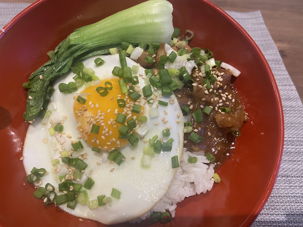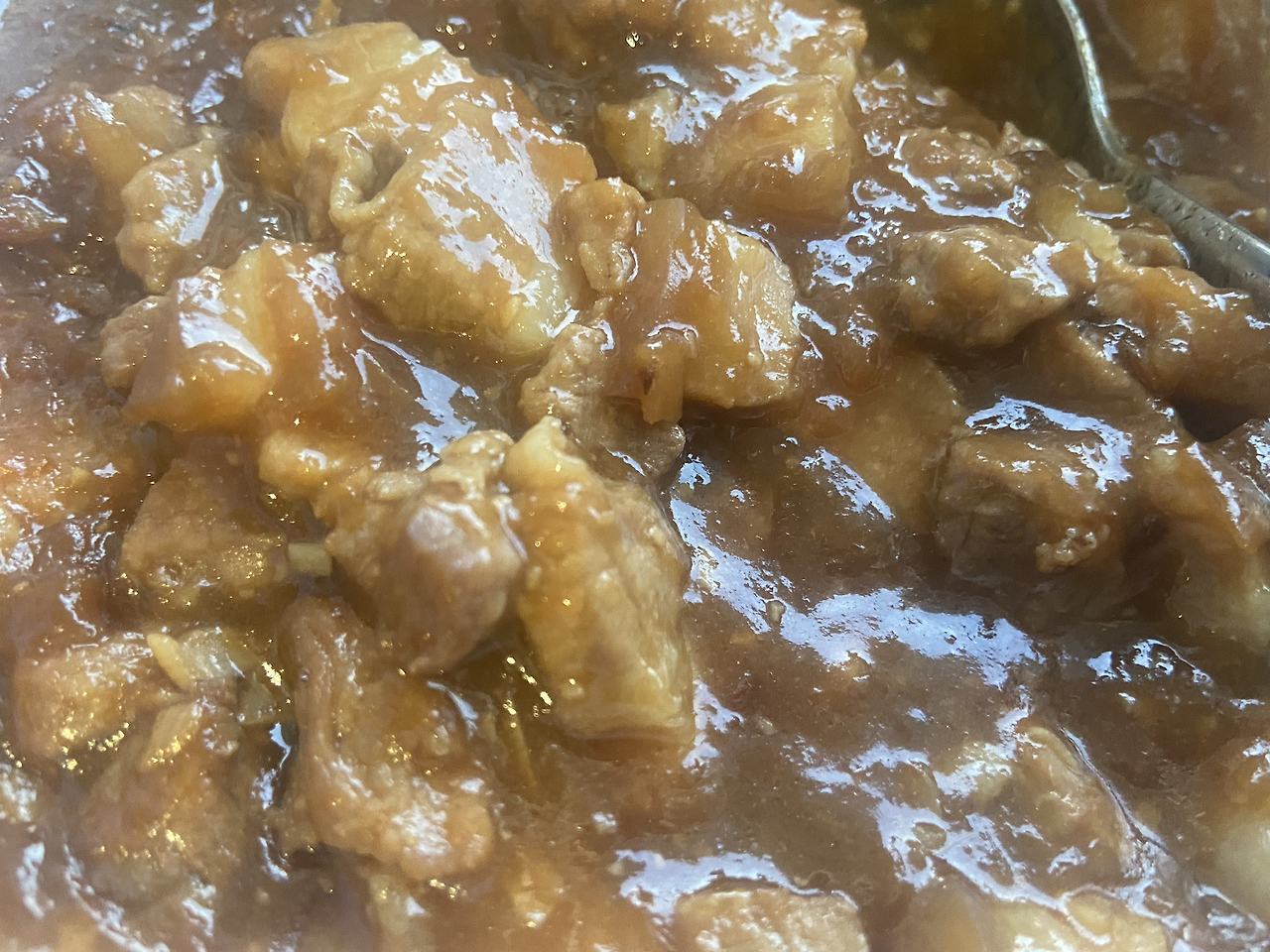 처음에 한국에서 기름에 양파와 마늘을 튀긴진 않고, 마늘은 충분히 볶아주고, 양파는 캐러멜 라이즈 시켜줘서 준비를 해뒀다. 그런 후, 나머지는 비슷하게 내 나름대로 간을 보며 재료를 넣고 1시간 뭉근하게 끓여내 주었다. 그럼에도 양파의 은은한 달짝지근함이 올라오면서 너무 맛있는 돼지고기 조림이 완성되었었다.