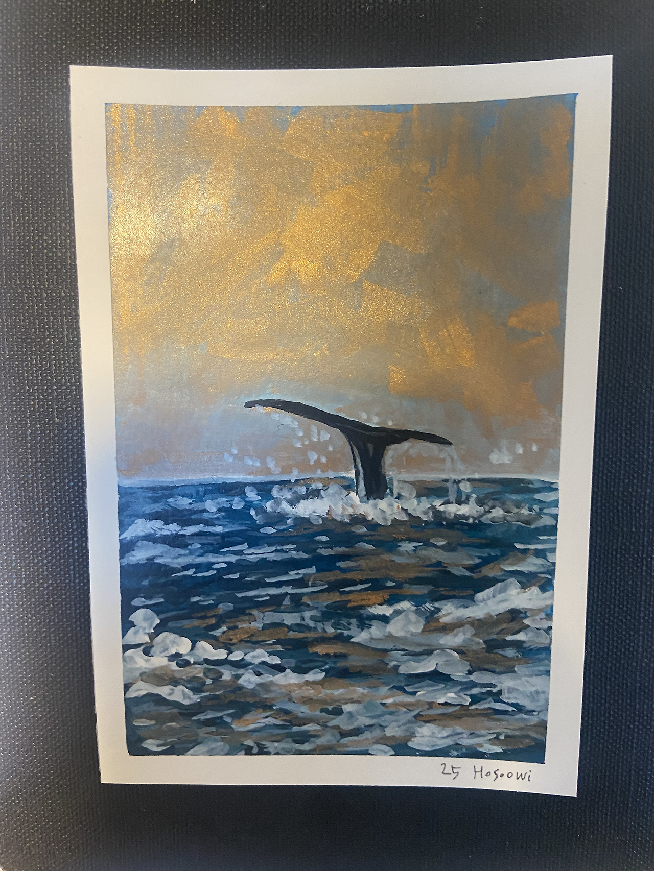 다음으로 강에게 보낼 엽서로 그림을 그렸던 거지만, 생일축하를 놓친 프랑스에 있는 친구가 생각났고, 이 그림엽서로 쓰고 싶은 멘트가 떠올랐다. 금빛으로 반짝이는 하늘이기에, 그의 삶도 이처럼 빛나기를 바라며 생일 축하를 건네고 싶었다. 그렇게 메시지를 전한다. 지금 엽서를 보내면 생일로부터 너무나도 늦어질 것 같아 사진을 찍고, 왓츠앱으로 전송한다. 내가 전한 그림을 보고는 대단하다며 너무 멋지다고 좋아하기에 주소가 이전과 그대로냐며 보내주겠다 묻는다. 바뀐 주소를 알려온다. 우표를 붙인다. 프랑스지만 국내와 똑같은 430원이다. 고종황제의 금빛 옥쇄가 사진의 우표이다. 우표에도 마음을 담는다. 알아줄지 모르겠지만.
