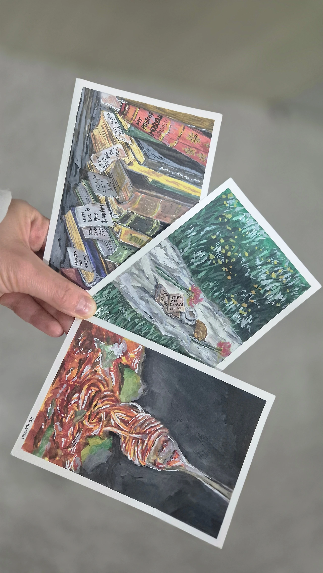 미술관에서 작품들을 보고는 우리끼리 "역시 아무리 책으로 봐도 원화는 못 따라가는구나."라고 말하곤 했었는데 강이 내 엽서도 그렇다 말했다.