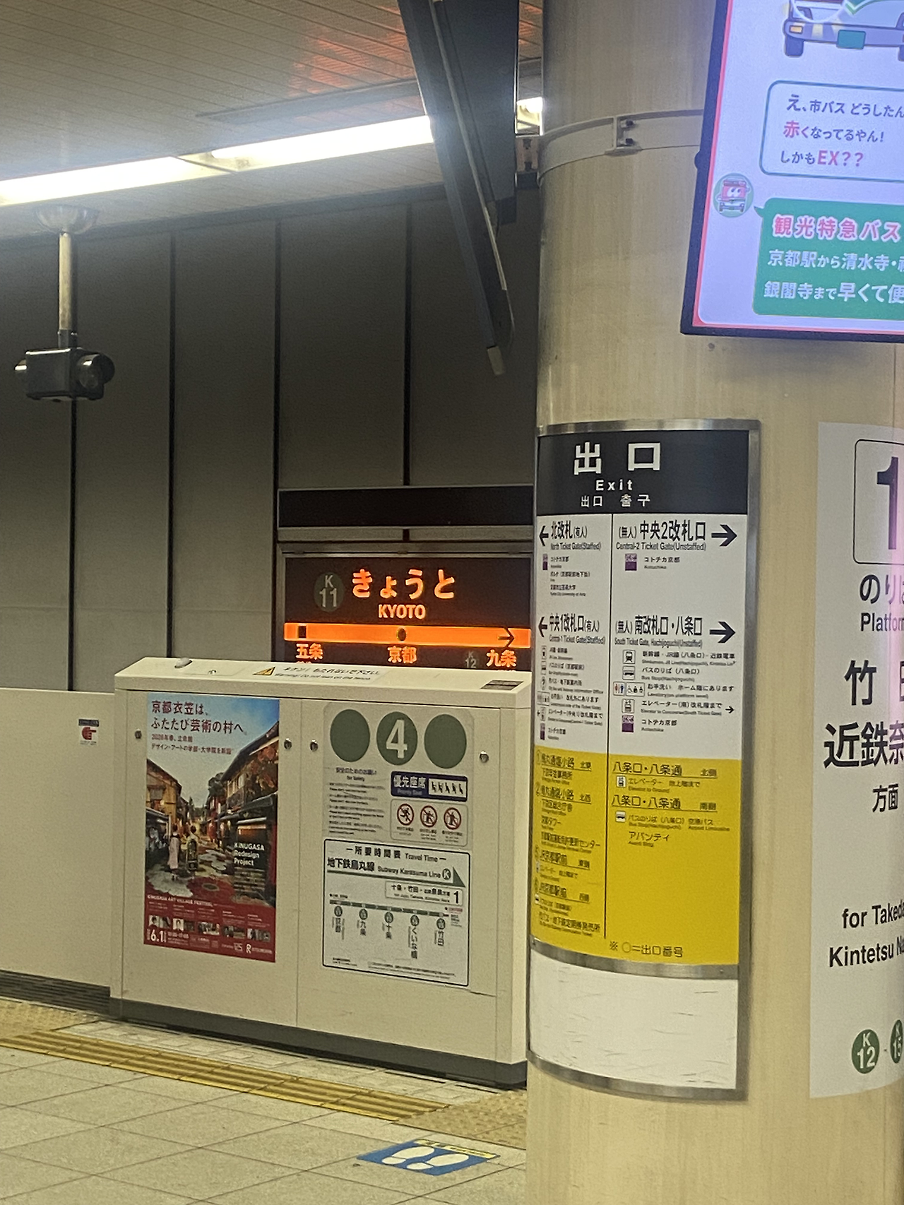 간사이 공항에서부터 교토로 오는 길까지, 모든 안내판과 안내방송에 한국어가 함께하고 있었다. 영어여도 크게 상관은 없지만, 당황하거나 하는 순간이 올 때 아무래도 한국어가 편하니- 한국어 안내들이 가득한 걸 일본 여행을 한결 수월하게 만들어 준다. 기차가 교토역에 다가갈 때 창밖에 비가 내리고 있었다. 다시 한번 순간적인 짜증이 올라왔지만, 숨을 한번 들이마시고 내쉬며 감정 조절을 한다. 비가 온다고 짜증을 내서 뭐 하겠는가. 내가 어찌하지 못하는 것은 그냥 받아들이는 게 편하다.