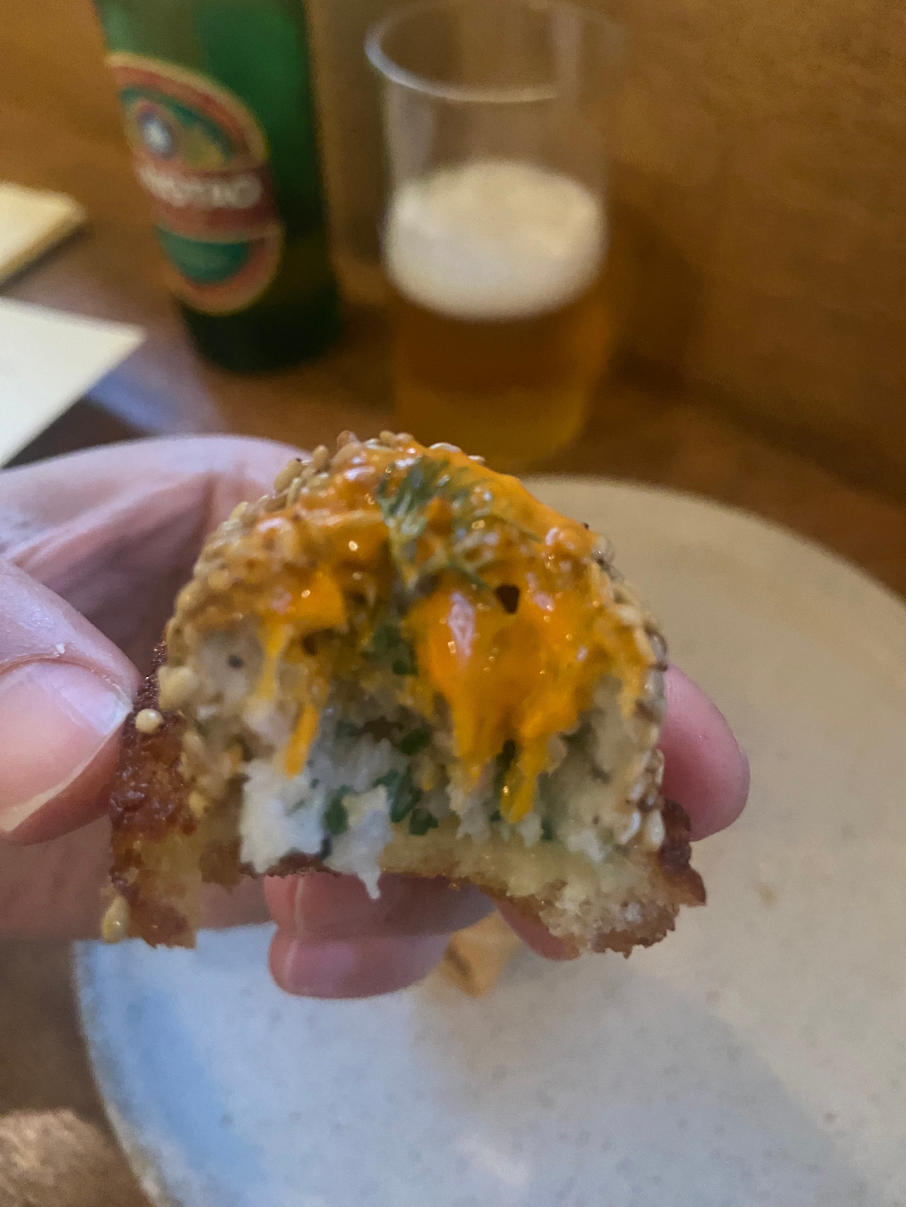 - 멘보샤 (새우, 참깨, 식빵, 스리라차 아이올리)