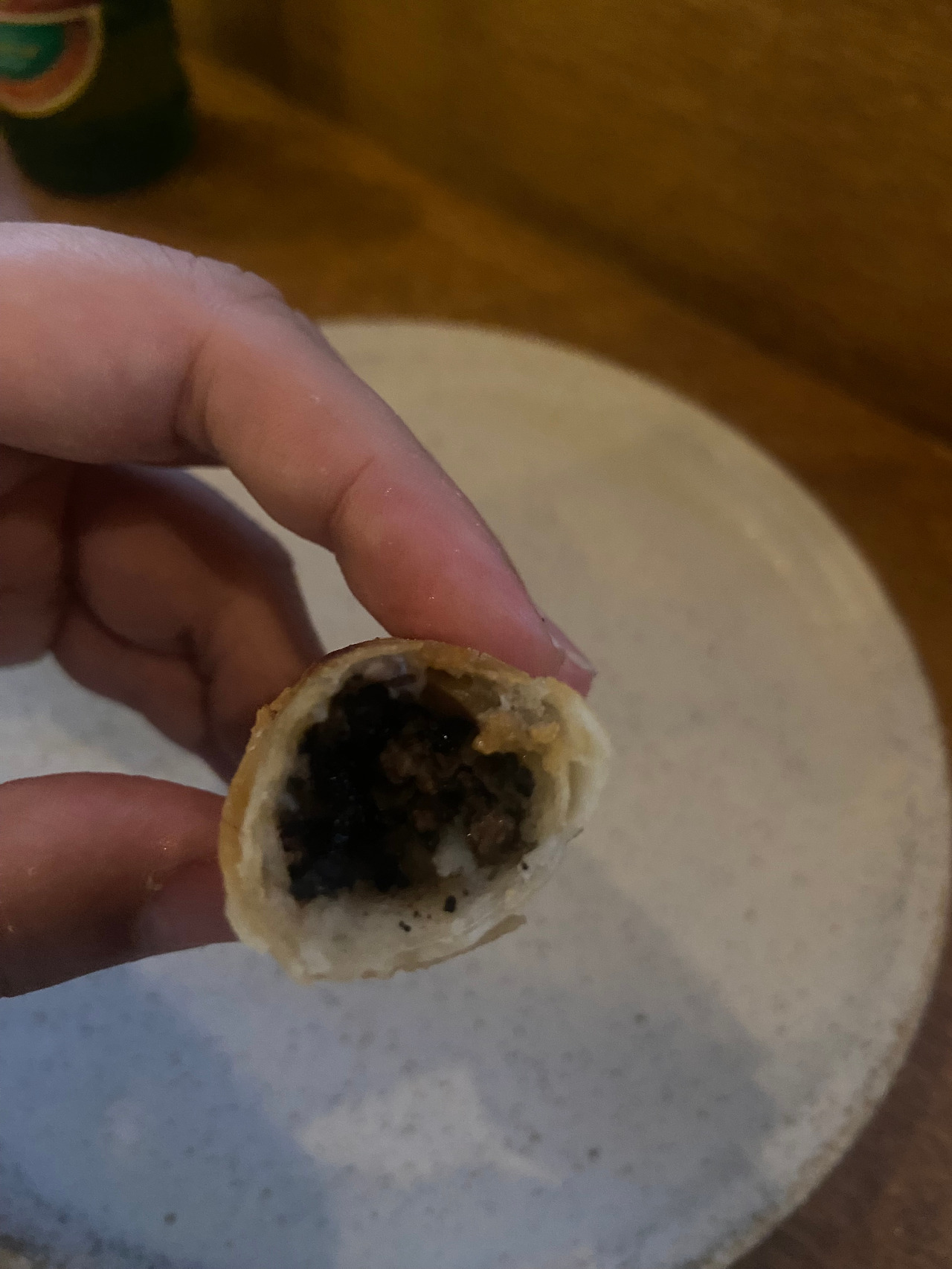 그 다음 춘권은 소고기와 직접말려서 가루낸 블랙 올리브 파우더, 트러플 아이올리. 그리고 청양고추를 직접 말려 파우더 낸거를 곁들였다고 했다. 맛을 보니- 내 생각보다 올리브와 함께 어우러진 트러플의 향이 강해서 소고기가 존재감을 내질 못했다. 소고기는 식감을 위해서 안의 필링으로만 존재감이 남아있을 뿐이었다. 좋은 고기를 썼다고했는데 아쉬움이 조금 있더라. 그래도 워낙 올리브 페이스트 같은 것도 좋아하기에, 기름지지 않게 깔끔하게 튀겨낸 춘권 속 올리브와 이들의 조합을 제법 즐길 수 있었다.