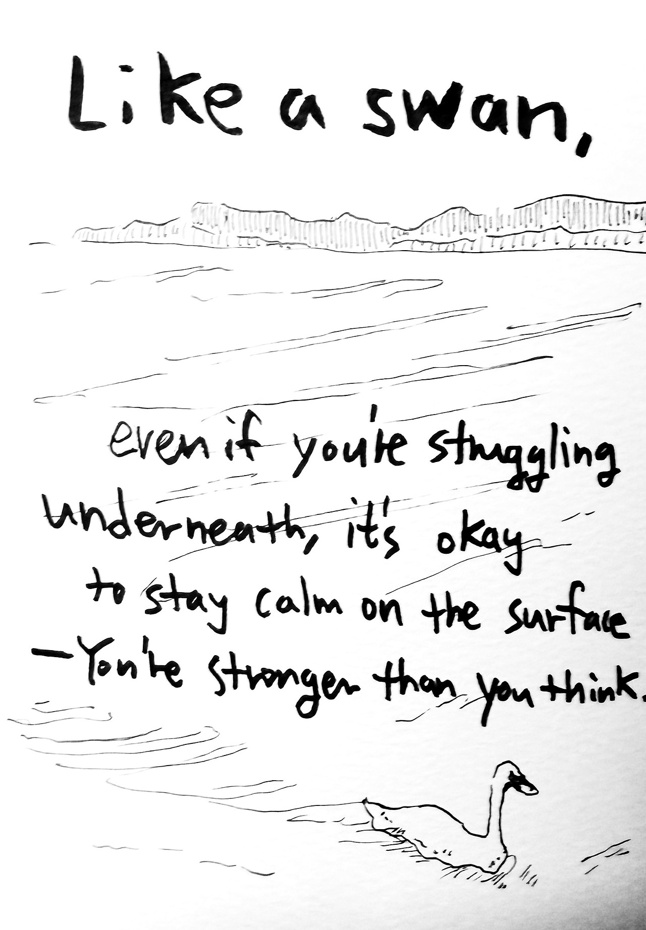 백조처럼, 힘든 일이 있어서 발버둥 치는 상황 속에서도- 아무도 모르게 그런 현실을 잘 헤쳐나갈 수 있다고 말이다. 당신은 잘 버텨나갈 수 있다고. 당신은 당신 생각보다 강하다고-