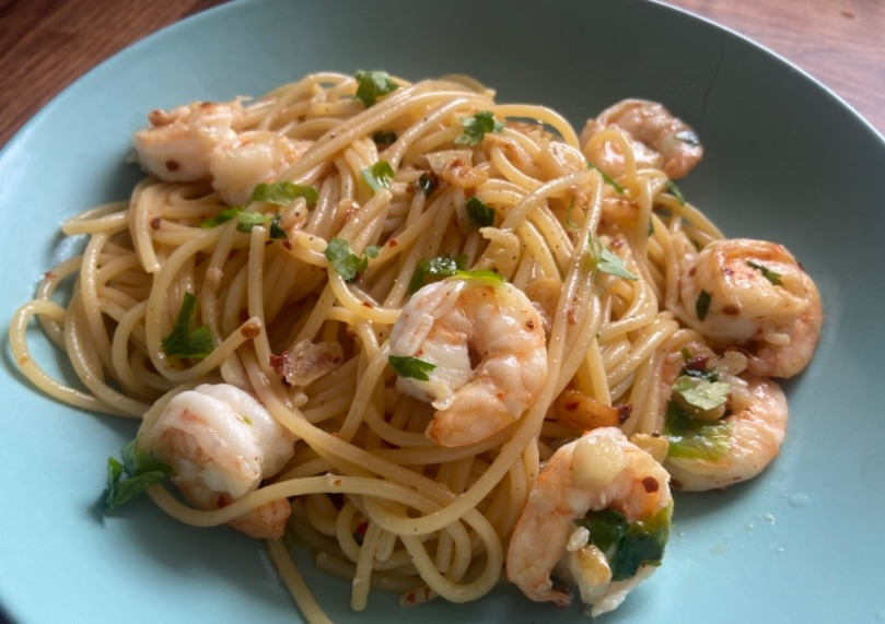 내가 만들었지만, 정말 맛있는 음식들이 종종 있다. 파스타는 사실 파스타만 잘 삶으면 뭘 해도 맛있다. 파스타를 만들 때 가장 하기 쉬운 실수라면, 면수에 간이 충분치 않은 것이다. 파스타에 간이 스며들지 않으면, 소스에 버무리는 짧은 순간만으로 전체 요리의 간이 맞아지기 어렵다. 파스타를 성공하기 위한 가장 좋은 방법은 소금의 정량화일 것이다. 인터넷에서 1000:100:10이란 비율을 보았다. 1000 mL의 물 (즉, 1 L)에 파스타 100 g, 소금 10g이라는 거다. 이대로만 따라 해도 파스타는 맛있다. 소스를 완전 엉망으로 만들지만 않는다면 말이다. 그럼 이제 맛있는 파스타 면을 삶을 수 있게 되었다면, 나의 새우오일 파스타를 만들어보자.