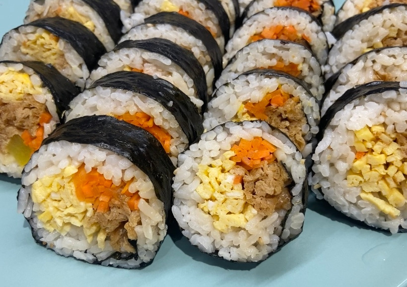 이제 김밥을 말아준다. 이미 재료들에 간이 다 맞게 되어있다면, 모두 하나하나 섞여도 간이 맞다. 하나가 짜다면 다른 것을 싱겁게 해서 전체적인 간을 맞춰주면 된다. 요리의 완성은 결국 간이다. 요리 중간중간 맛보는 것을 게을리하지 말자. 완성되고 맛을 수정하는 건 조금 늦은 거니까.