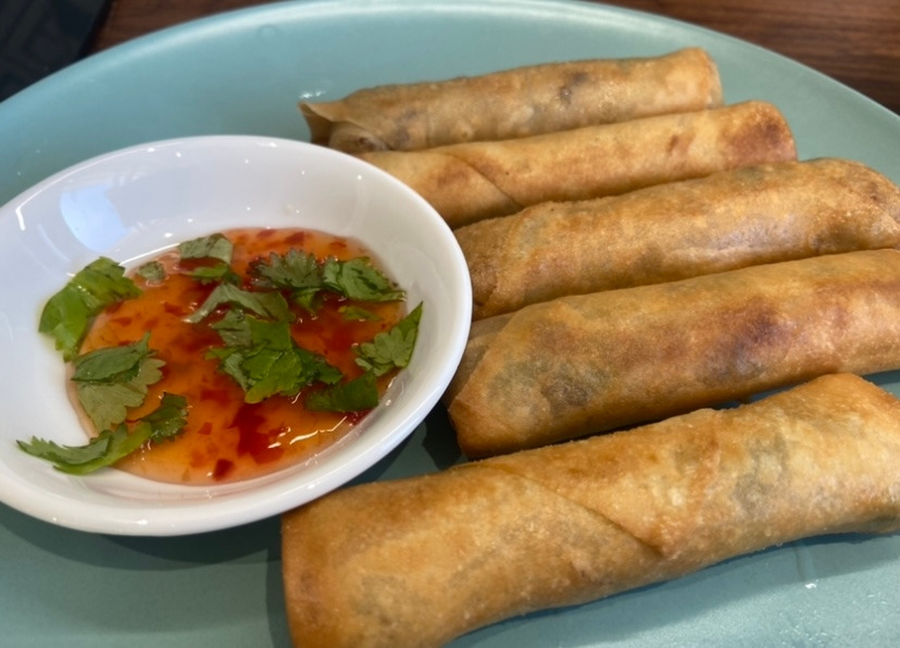 이제 튀김용 기름을 준비한다. 잠길 정도의 기름이면 충분하다. 춘권피는 그렇게 고온으로 할 필요는 없다. 저온으로 서서히 튀겨준 게 색이 더 예뻤다. 속은 이미 익었으므로, 겉에 춘권피만 노릇하게 튀겨지면 완성이라 튀김 시간도 아주 짧다. 예쁘게 튀겨진 튀김을 건져두고 기름이 빠지면 접시에 옮겨 담는다. 나는 내 취향대로 스위트 칠리소스에 고수를 넣어 준비했다. 소스에도 찍어먹지 않고 그냥 먹어도 간이 잘 맞아서, 바삭한 겉면과 간이 딱 맞는 속재료들이 아주 맛있다.