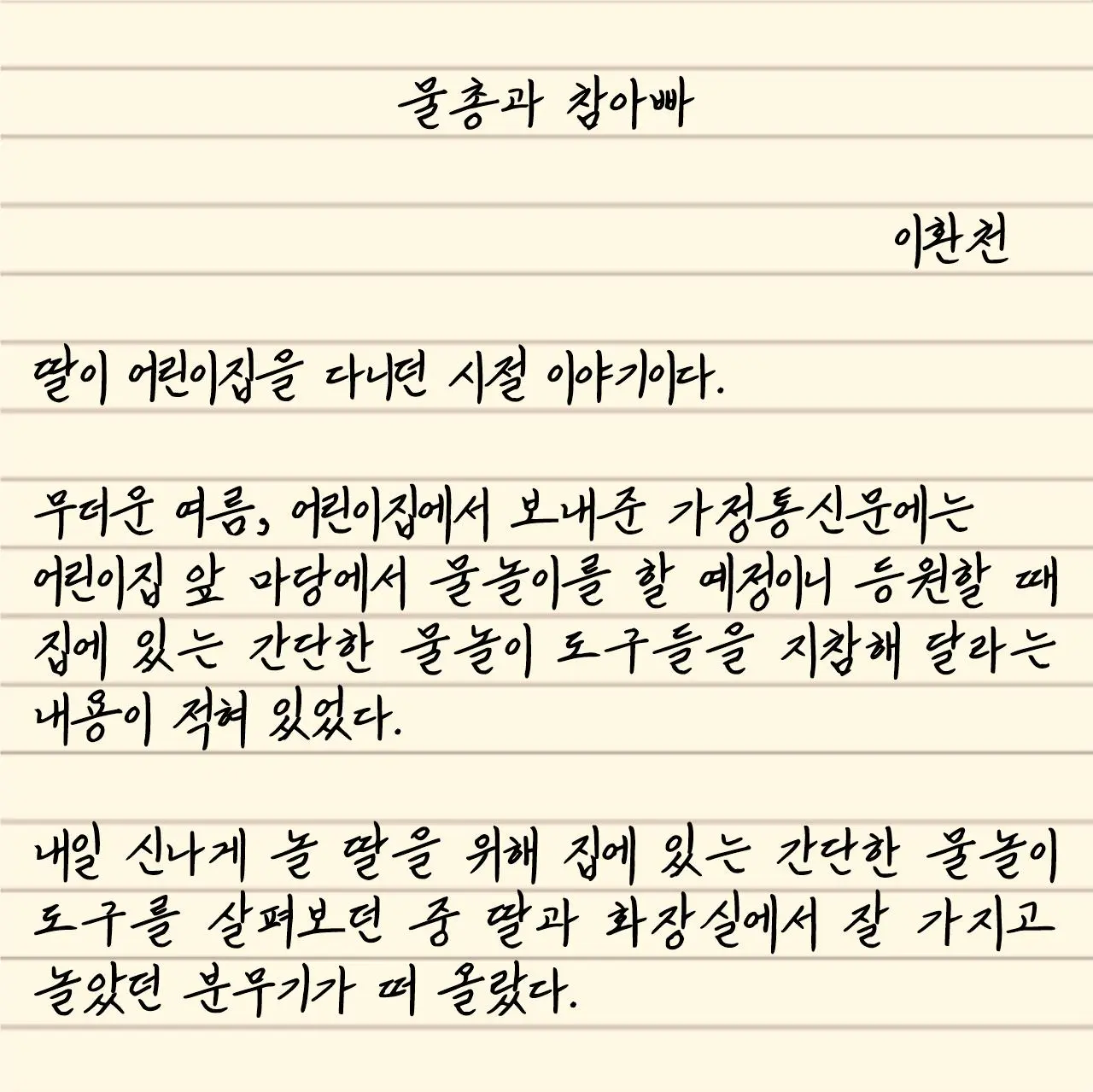 안녕하세요. 이환천 작가입니다. 소소한 일상을 글로 남깁니다.