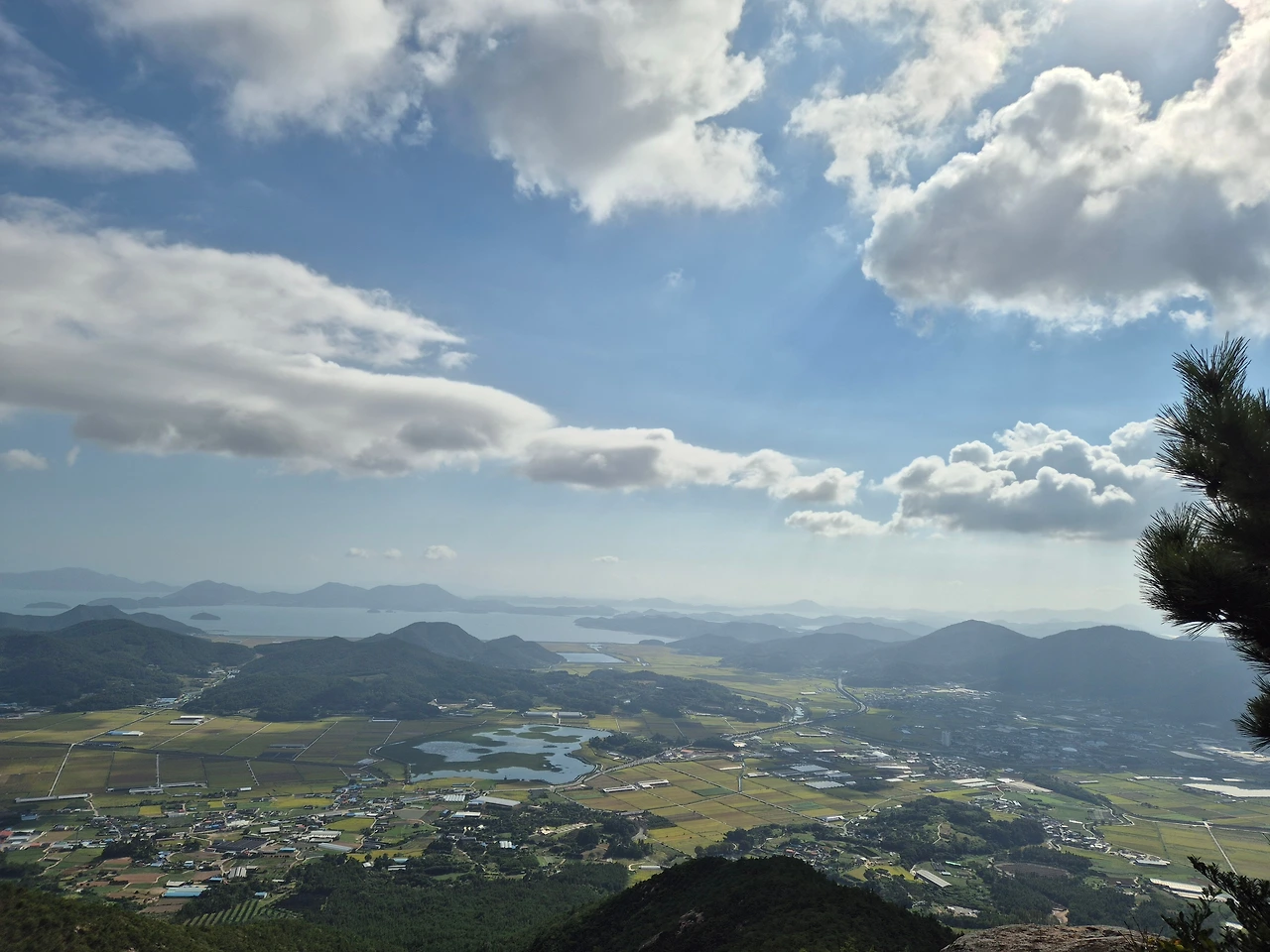 천관문학관을 지나 탑산사 주차장까지 가는 길 옆으로 크고 작은 돌탑이 빼곡했다. 너무 많은 소망들에 숨이 막힌다. 차를 대고 내려 신발 끈을 단단히 매고 모자도 단정히 썼다. 물이 들어 무거운 배낭은 남편이 짊어지고 나는 스틱만 들었다. 탑산사에서 불영봉을 거쳐 연대봉으로 가는 게 제일 쉬운 코스다. 내려올 때는 억새를 보려고 연대봉에서 닭봉을 거치기로 했다. 한 번 겪은 탓으로 각오를 단단히 해서인지 살살 잘 올라갔다. 그러나 역시 결의가 무색하게 숨이 곧 죽을 것처럼 찼다. 무리하게 뛰는 심장, 터질 것 같은 허벅지, 찢어질 것 같은 폐. 이것들을 어떻게 다스려야 할지 몰라 그냥 헉헉 댈 뿐이다. 열 발 떼고 멈추고 열 발 떼고 멈추고를 반복했다. "자기야, 끝까지 갈 수 있을까?" "천천히 천천히 해" 모두 나를 앞질러 갔는데 이보다 어떻게 천천히? 혼자 왔으면 온 산을 휘젓고 다녔을 텐데 좀 미안하다. 남편이 말한다. "있잖아, 작년에 막내랑 산에 왔을 때보다 뒤를 더 많이 돌아본다. 고개가 좀 아프네." "갸는 몸이 가볍잖아, 육중한 몸이 한 발짝 떼기가 얼마나 힘든지 알아?"라고 소리를 질렀다. 물을 마시라며 생수병을 건넨다. 숨이 차니까 물도 안 먹힌다. 그래도 마셔야지, 저 사람 배낭을 좀 가볍게 하려면. 불영봉이다. 큰 바위들이 무더기로 쌓여 봉우리를 이루었다. 꼭대기에 메주 모양 같은 커다란 바위가 우뚝 서 먼 곳을 바라보는 듯하다. 부처님 얼굴이라는데 잘 모르겠다. 자꾸 봐도 신기해, 기암괴석이란 말이 딱 걸맞다. "답답하면 혼자 갔다 올래요? 나 여기 앉아 있을게." 말을 무시하고 손을 잡아당겨 일으킨다. 조금 평지가 나오더니 계단 지옥에 걸렸다. 이게 정녕 초보자 코스인가? 그래도 끝은 있어서 빠져나오니 완만한 능선이었다. 사방 겹겹이 포개진 산, 그 아래 펼쳐진 너른 들, 앞으로 멀리멀리 내닫는 바다, 올망졸망 오며 있는 사람의 집. 내 몸이 기대 사는 세상이 이렇게 찬란한 줄 몰랐다.