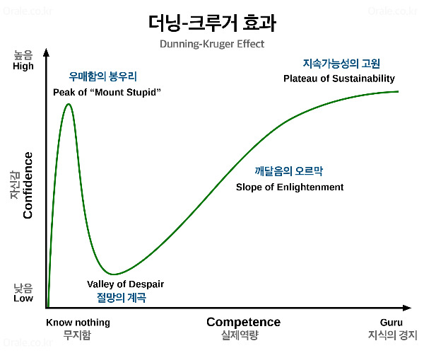 결정을 한 이후로는 관련 서적과 인터넷 강의로 몇 달간 독학을 했다. 어느 정도 공부를 한 후 나는 우매함의 봉우리 최정상에 등반한 상태였다. 잡다한 온갖 지식들을 머리에 넣은 이론만큼은 완벽한(본인 나름) 상태가 되었다고 큰 착각에 빠진 상태였다. 따라서 이제 봉우리를 내려갈 일만 남았었다.