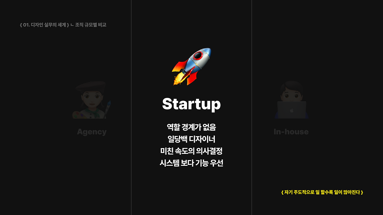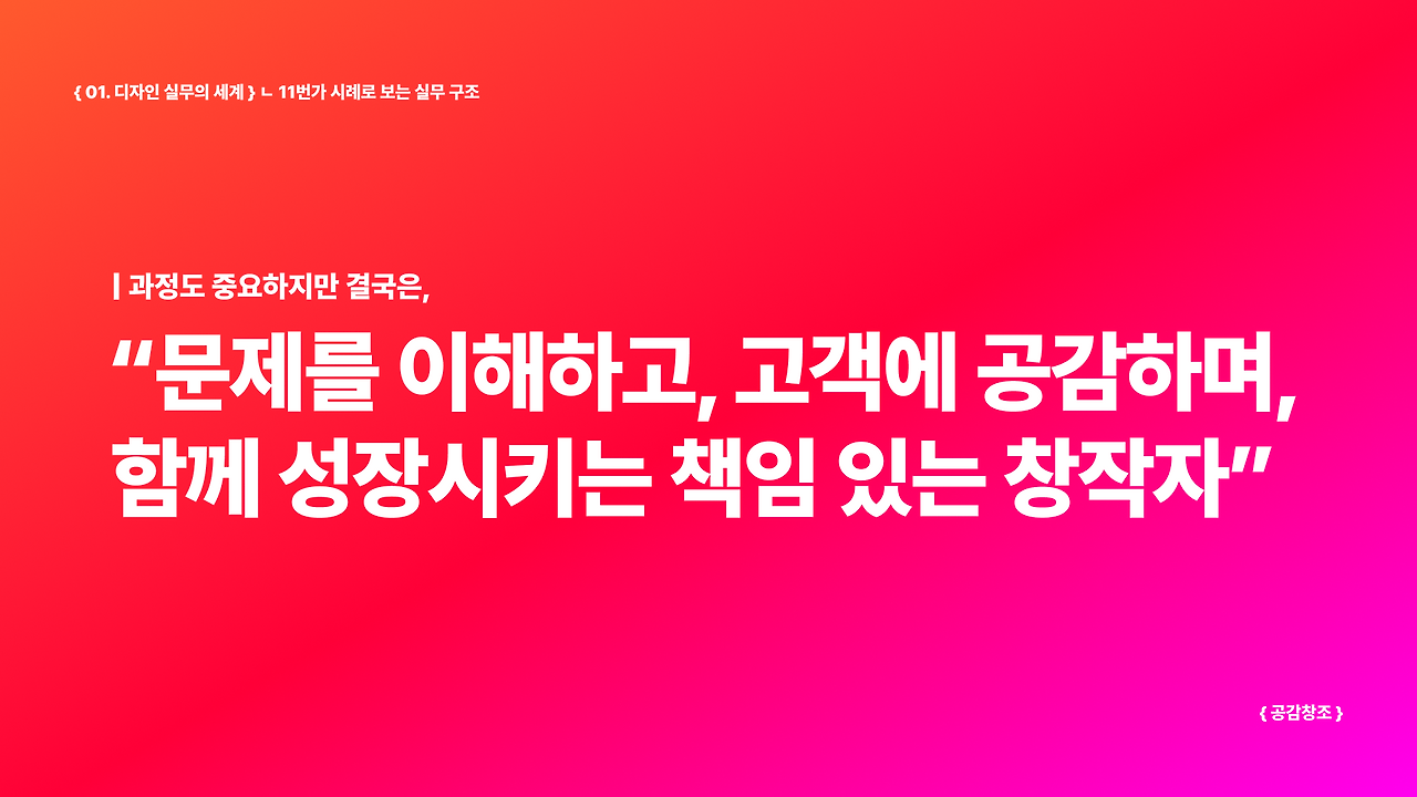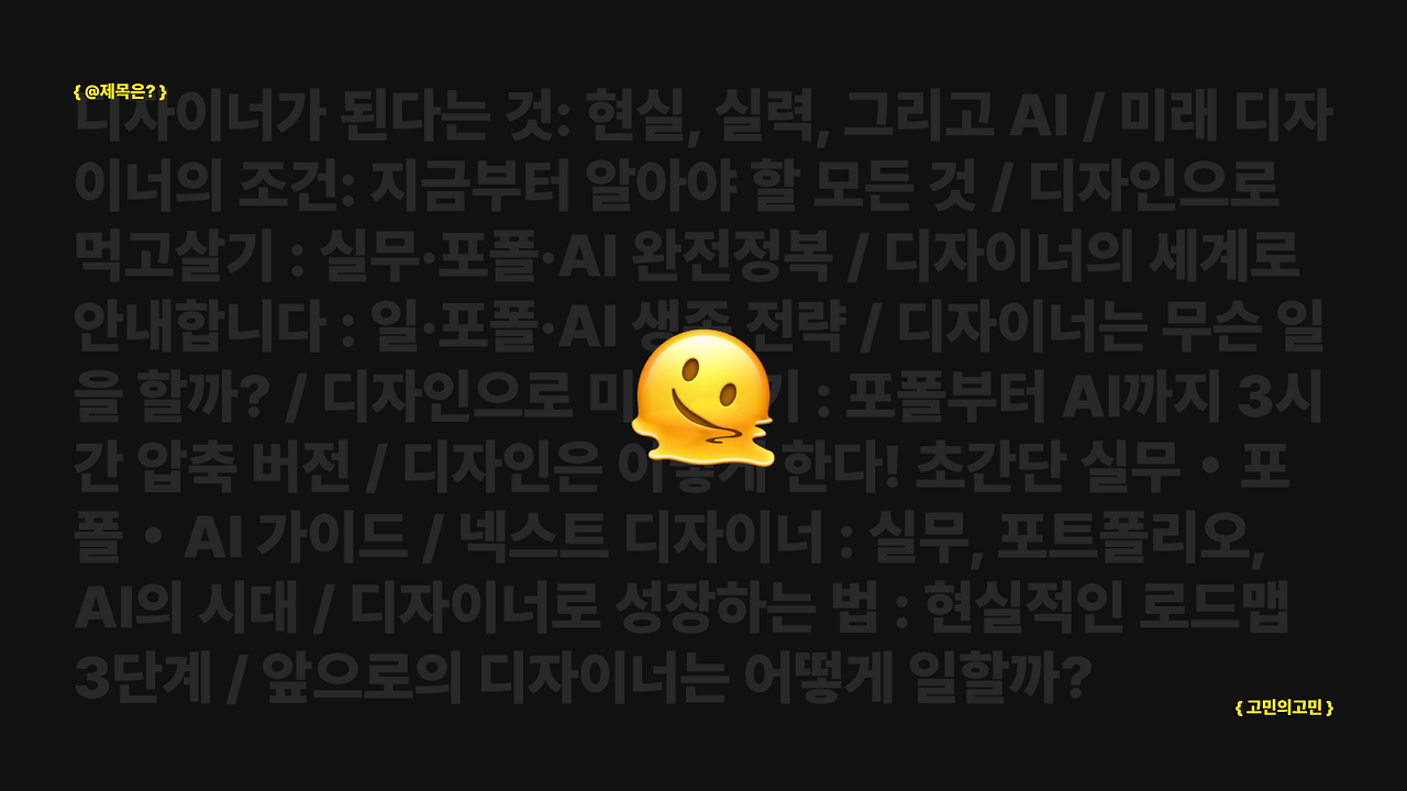 커머스 환경에서 UX와 프로덕트를 설계하며 디자인을 결과물이 아닌 사고 방식으로 다룹니다. 답을 정리하기보다 생각을 오래 남기기 위한 공강입니다.