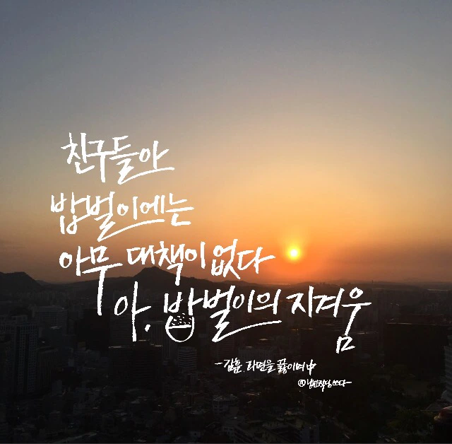 오늘도 비장한 마음으로 출근길을 나선다. 비록 급행열차를 타기 위해 낭만과 자존심과 품위를 버리는 일개 직장인이지만 나 역시 끝내 밥벌이가 목표는 아니다. 달라지는 건 없지만, 끝내 밥벌이가 목표가 아니라는 사실은 밥벌이의 지겨움과 비장함을 넘어 신성함으로 나를 이끈다. 정신승리여도 좋다. 어쨌든 밥벌이가 결국의 목표는 아니기에.