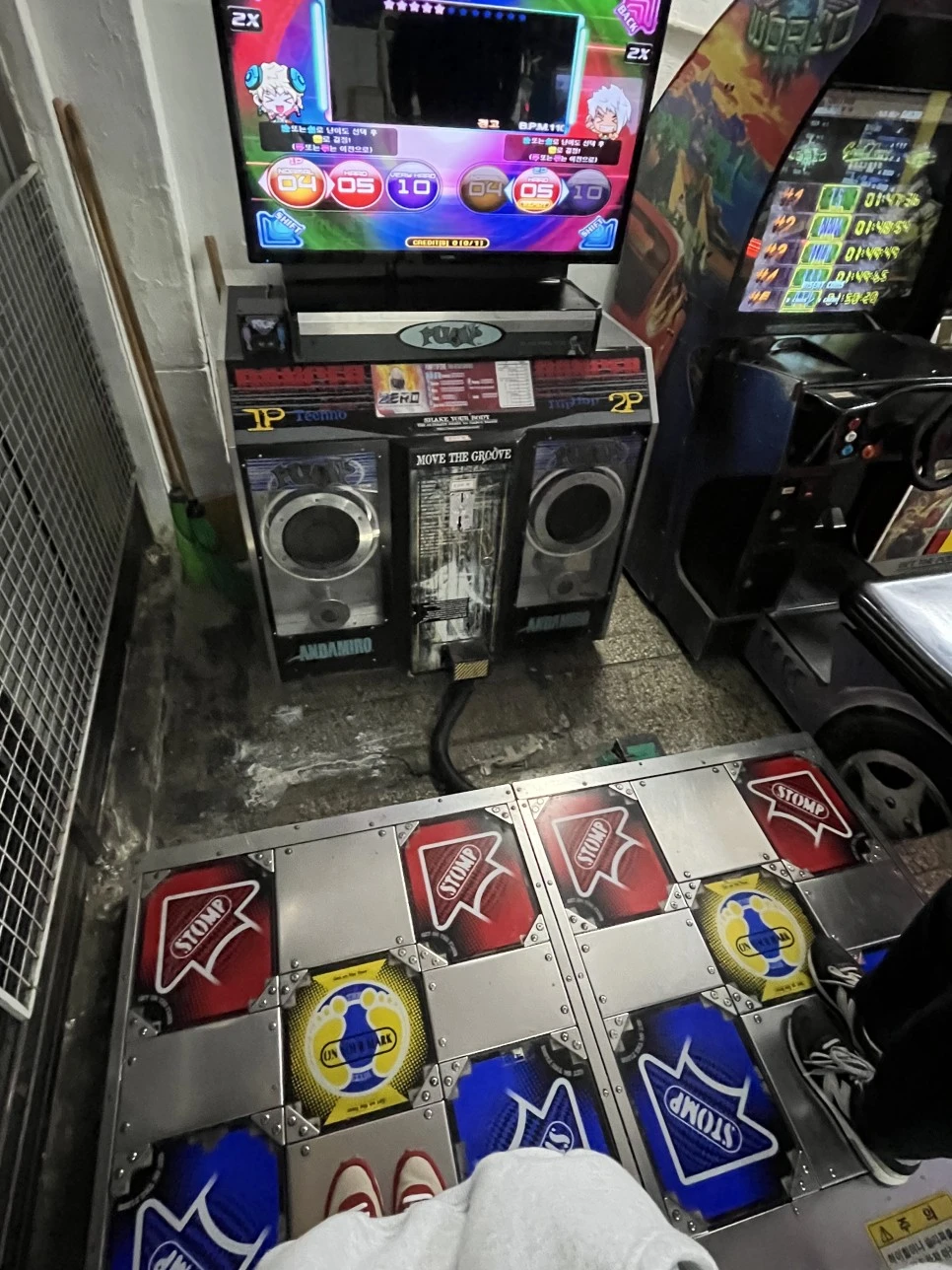 요새 DDR과 펌프 기계를 갖춘 오락실이