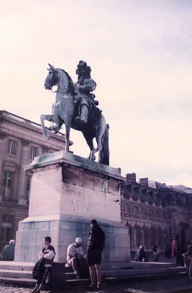 (궁전 입구에 서 있는, 루이 14세의 기마상이다.)