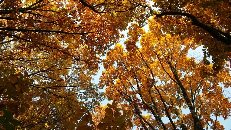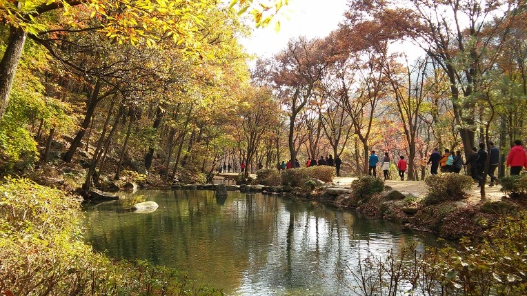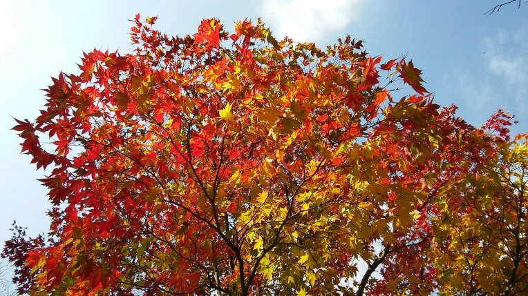 멋스럽게 단풍들어 푸른 하늘과 잘 어울리고