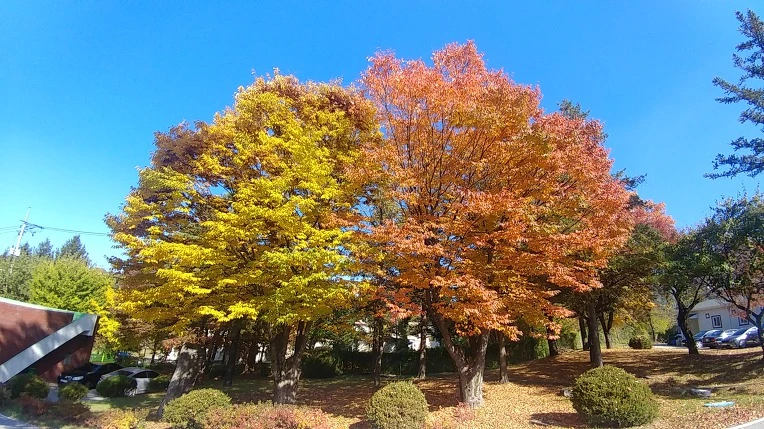 조금 떨어져 두 그루를 한 그루로 보면 멋찐 하모니를 이루는 아름다운 모양이 되었습니다.