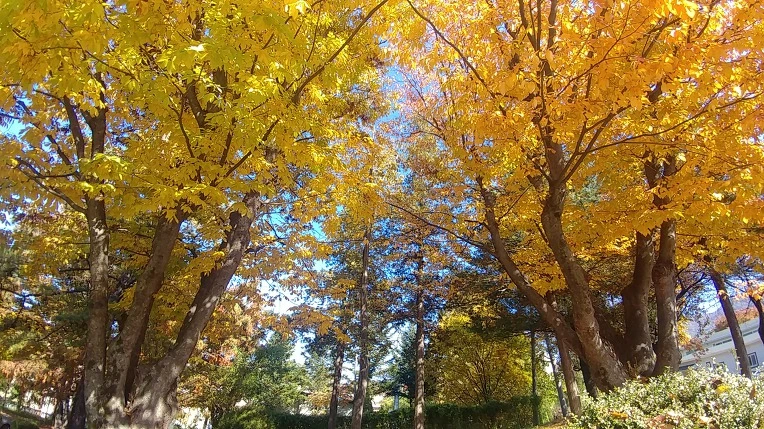 주변의 나무들도 놀라고 지나가던 사람들도 두 나무를 기특한 눈으로 바라보며