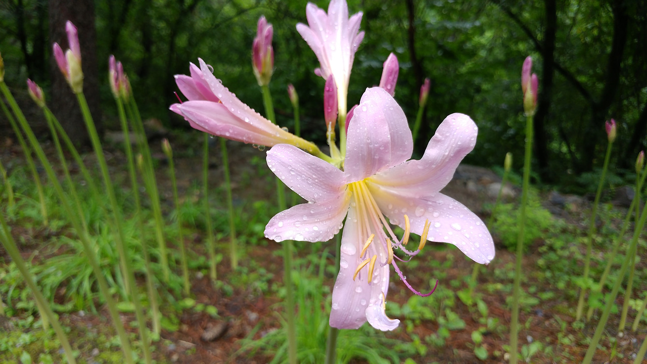 잎없는 기다란 꽃대에 애절한 분위기의 꽃을 피우는 상사화