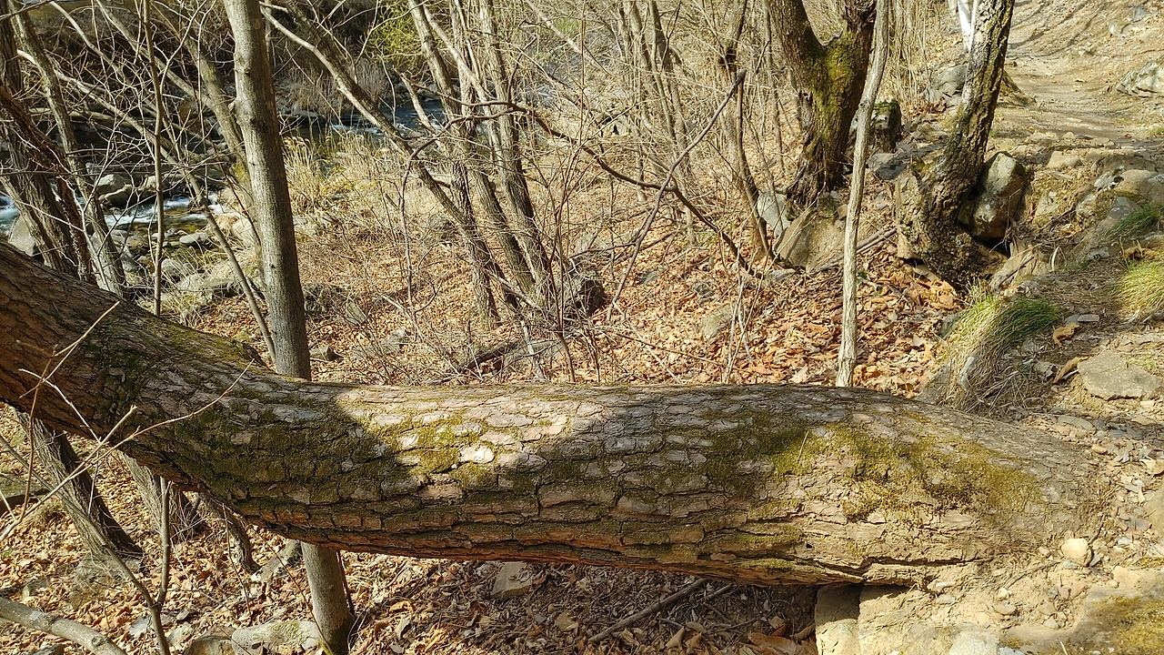 옆의 누운 커다란 소나무가 이야기 하네요.