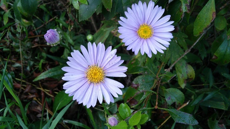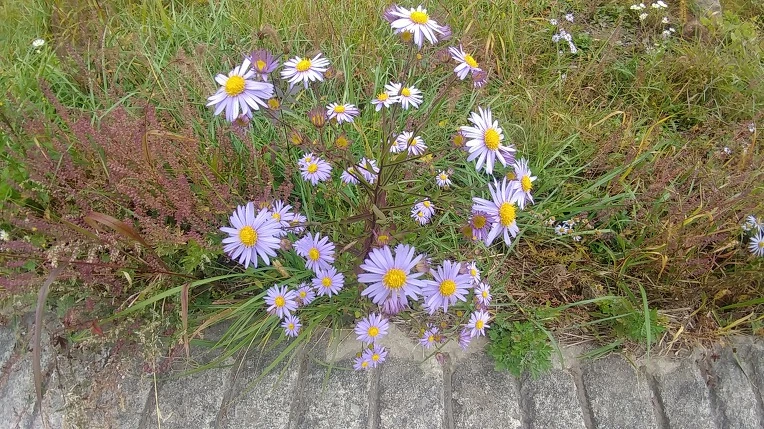 가을 아침 안개내려 앉은 산자락에 애절하게 꽃피우는 쑥부쟁이 꽃