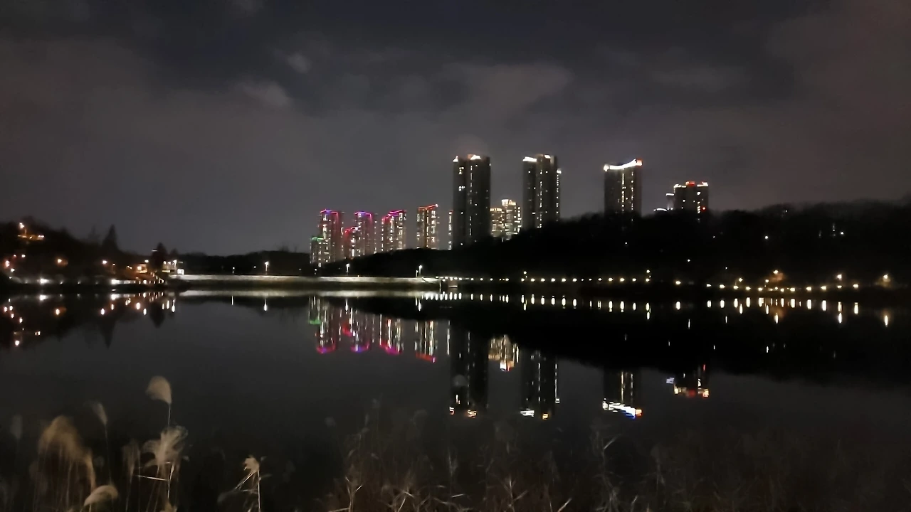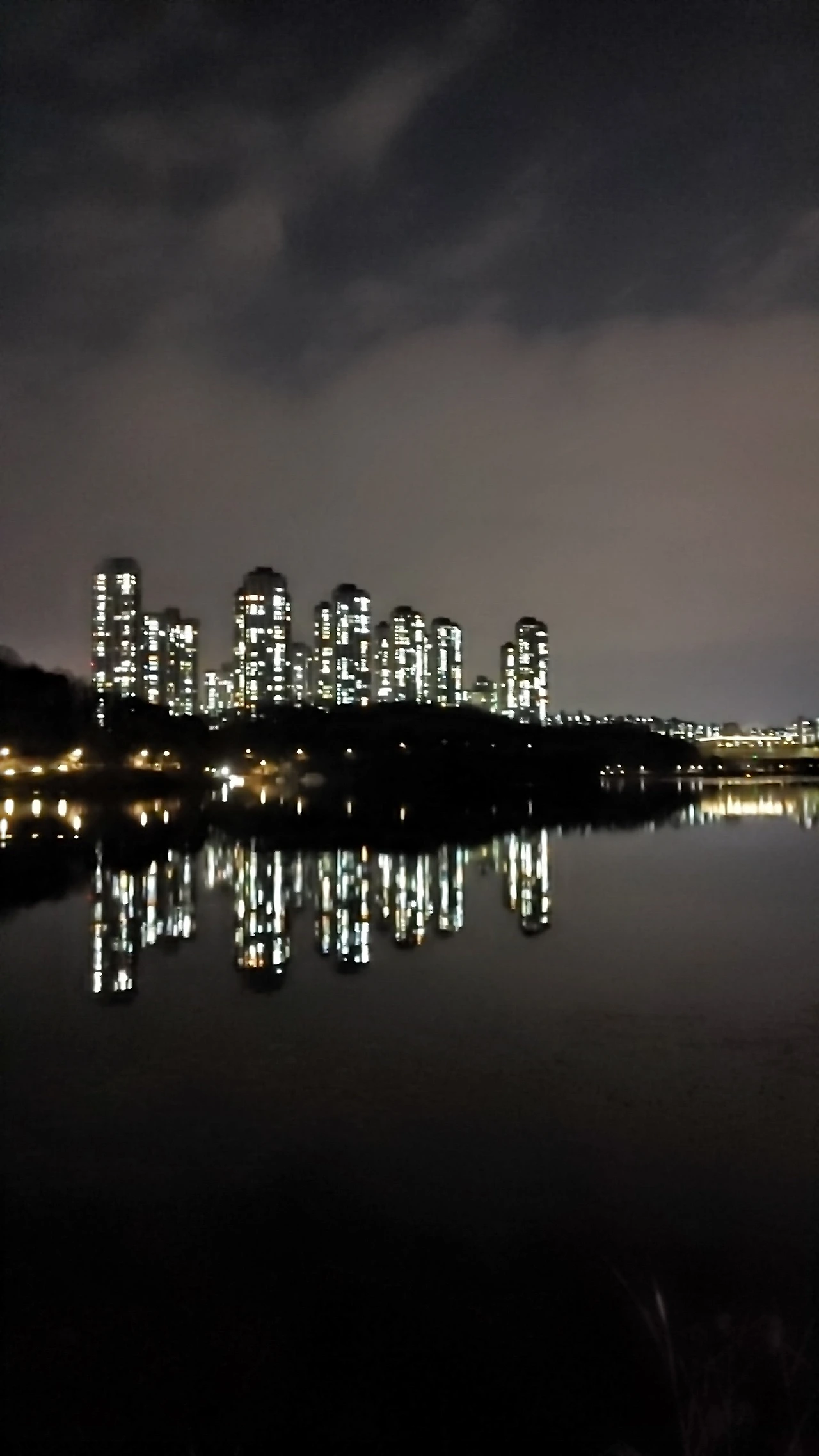 어둠이 내려앉은 호수공원을 거닐며