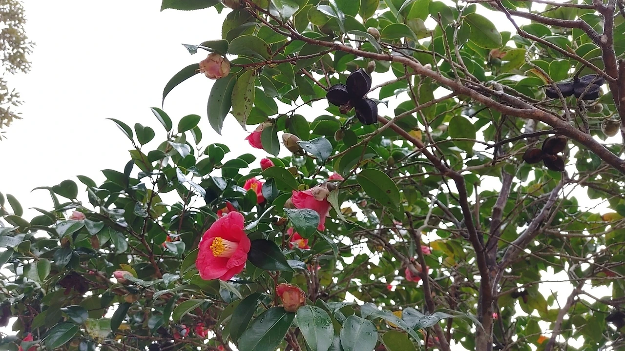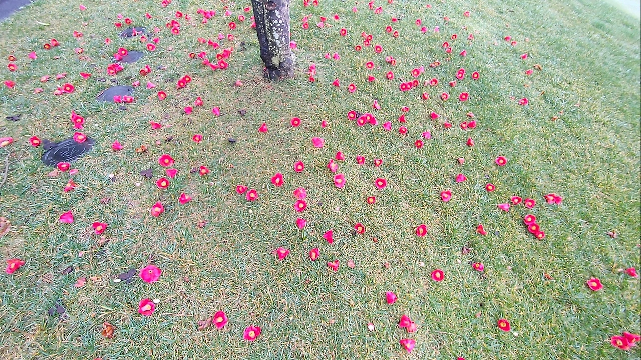 동백꽃이 흐드러지게 피고 떨어져 내린 뒤켵에서