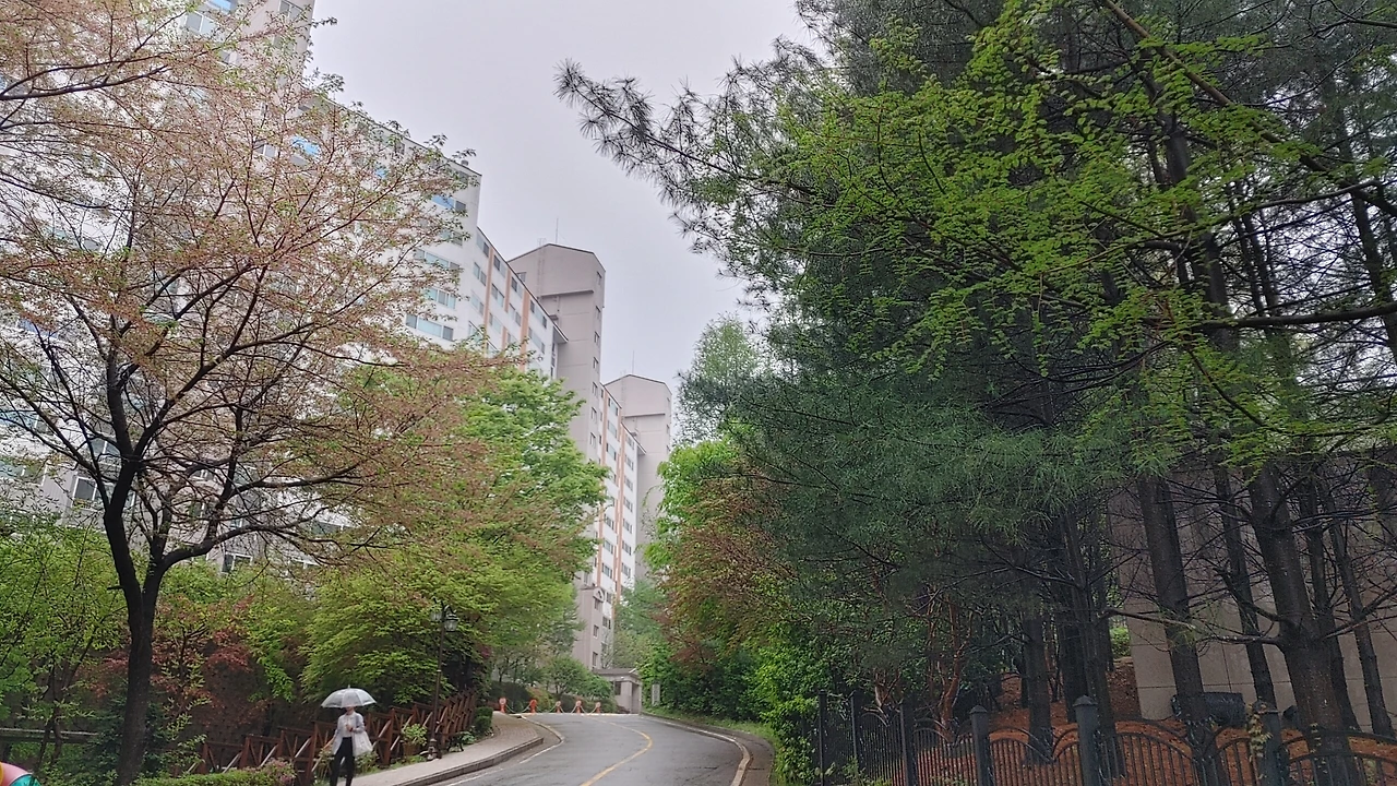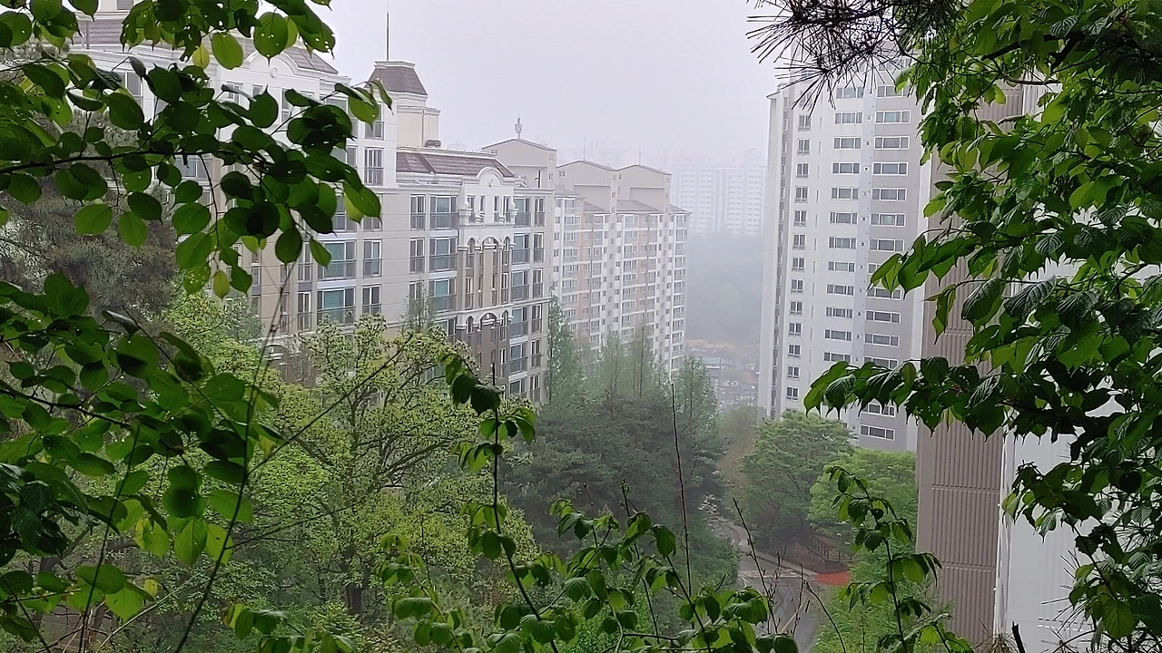 숲속의 상큼함을 만끽하려 아파트 현관을 나서며 뒷산 약수터로 향하려는데