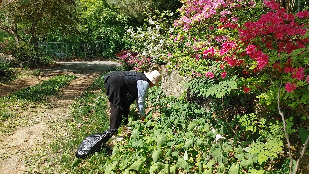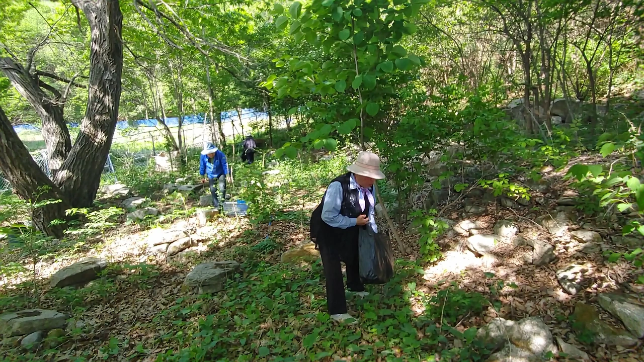 이모님댁 주변 정원에서 취나물 뜯으시는 자매분들