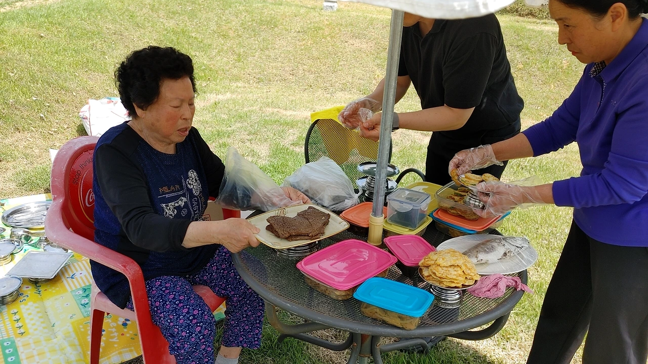 맛난 것 해드시며 돈독한 자매의 정을 나누셨습니다.