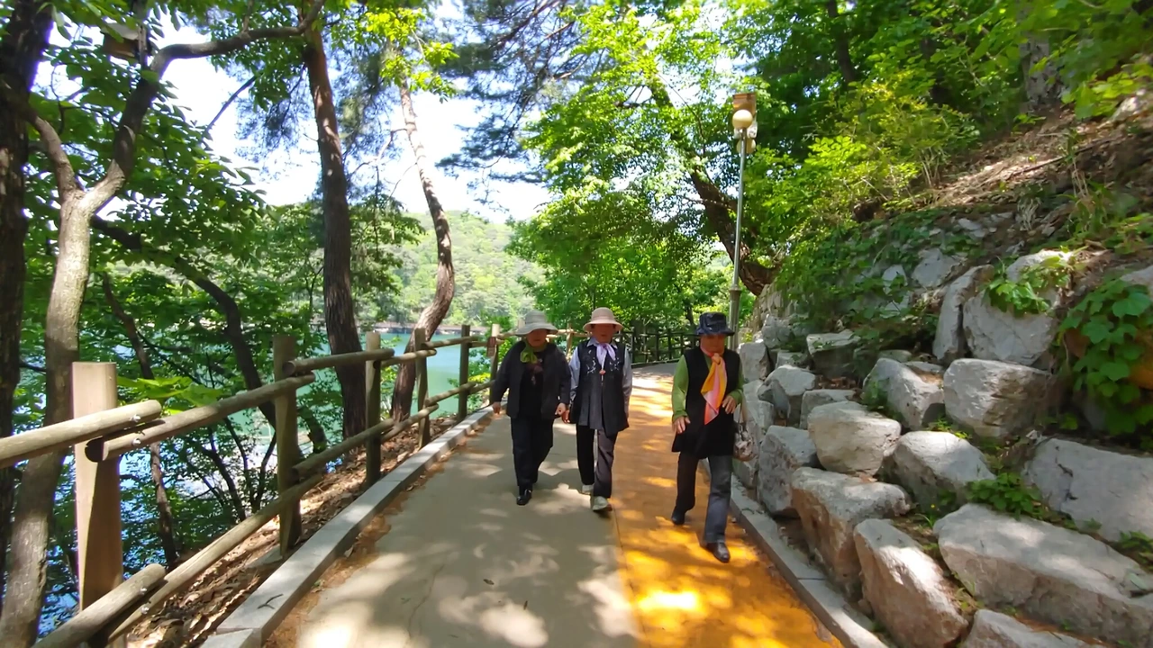 문경새재길 그 아름다운 길을 걸어 내려가는데 부인이 밝은 목소리로 말하네요.