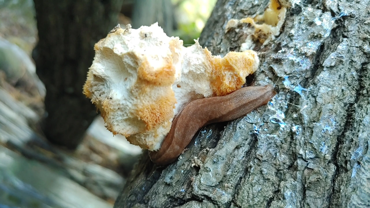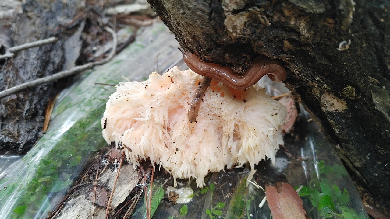 초가을 9월 나무에서 피어나는 노루궁뎅이버섯은 민달팽이의 좋은 먹잇감이지요