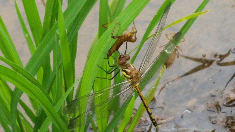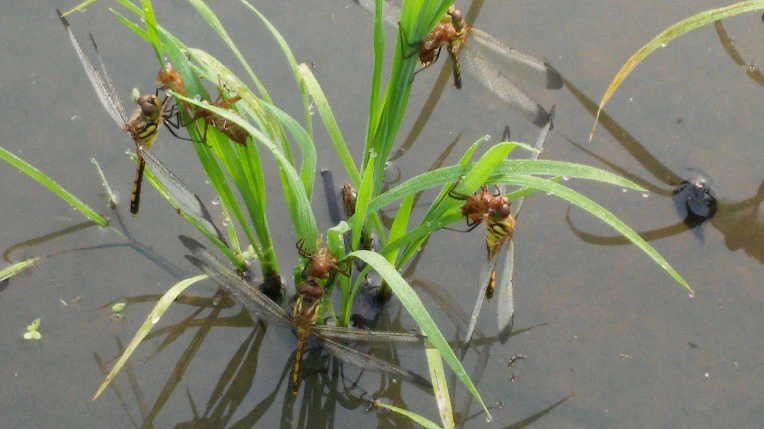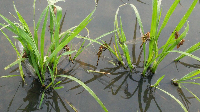 모내기를 마친 5월말 논에서 잠자리들이 우화(날개돋이)를 합니다
