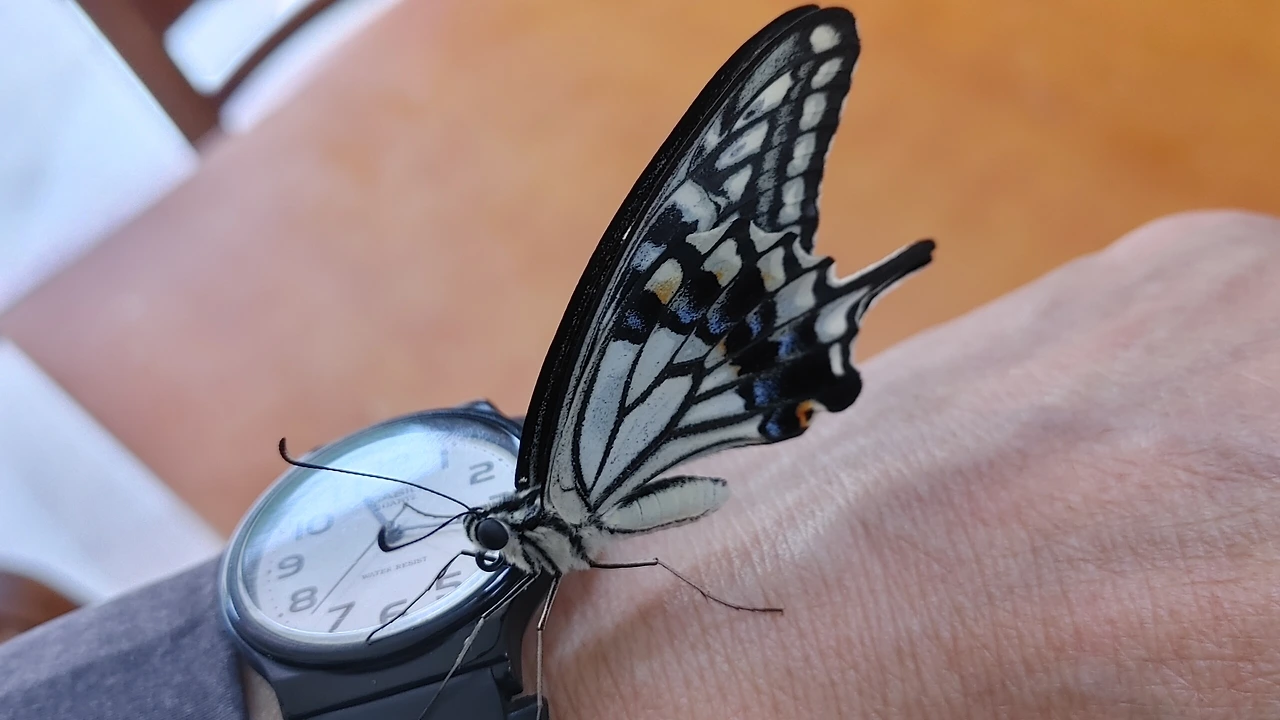 앞날개 두개는 잠자리 날개를 닮아 길었고 뒷날게 두개는 나비 날개를 닮아 넓적한 모습이었는데