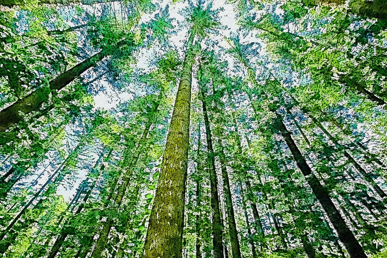 언덕위에 다른 나무에 비해 더욱 거대한 아우라(aura)를 풍기는 엄마 전나무(mother-tree)가
