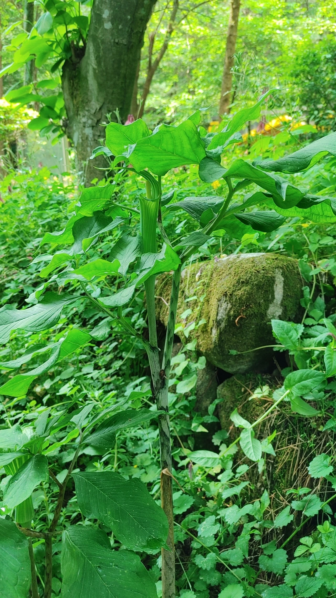 산삼처럼 생긴 줄기며 잎사귀, 그 복엽 아래 뱀머리처럼 생긴 꽃같은 것이 굽어서 피어나고 있었습니다.