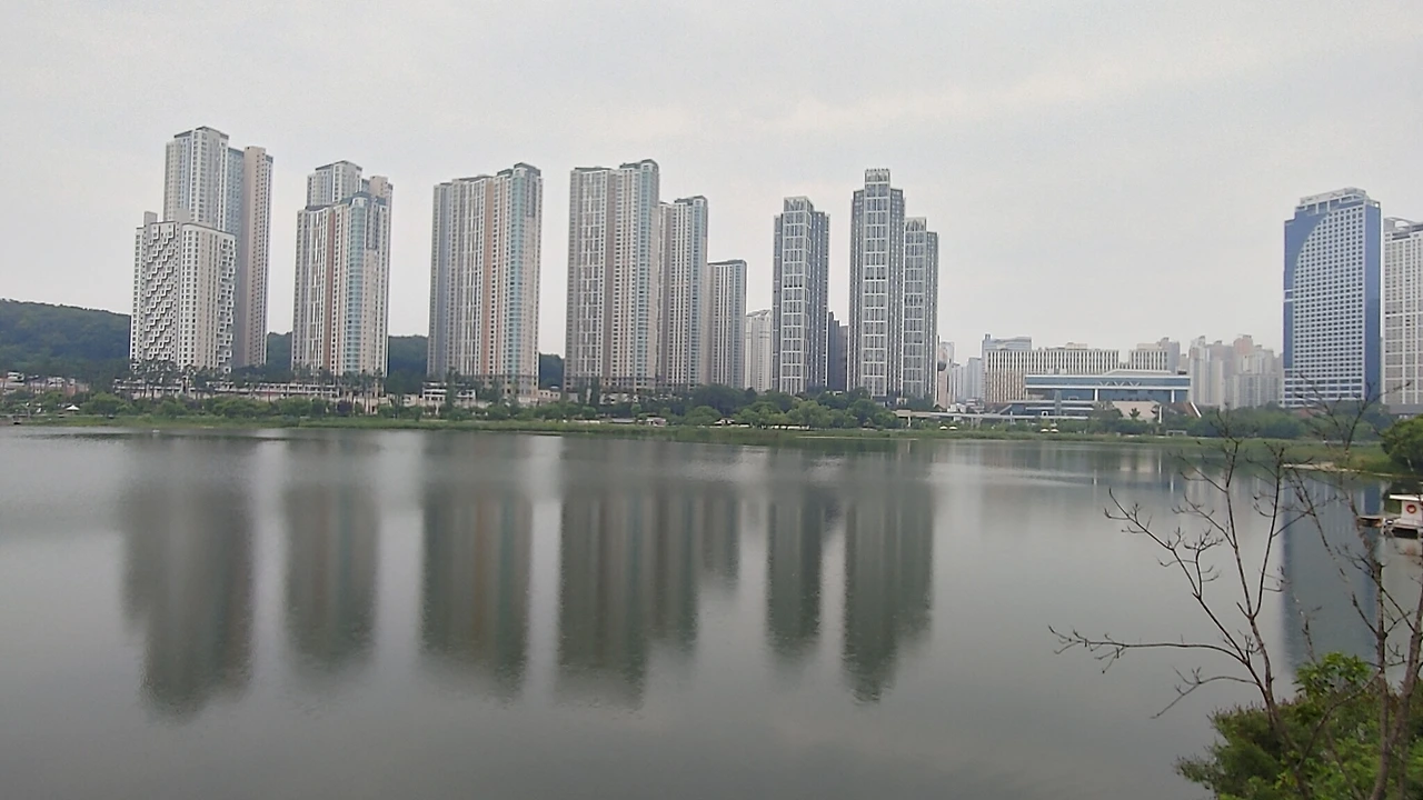 호수가에 새로 조성된 공원에 도착하였습니다.