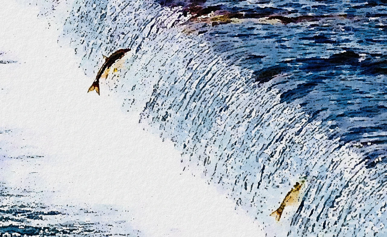 치어들이 태어난 옅은 물가에 도달하기까지 얼마나 많은 폭포를 올라야 할지...