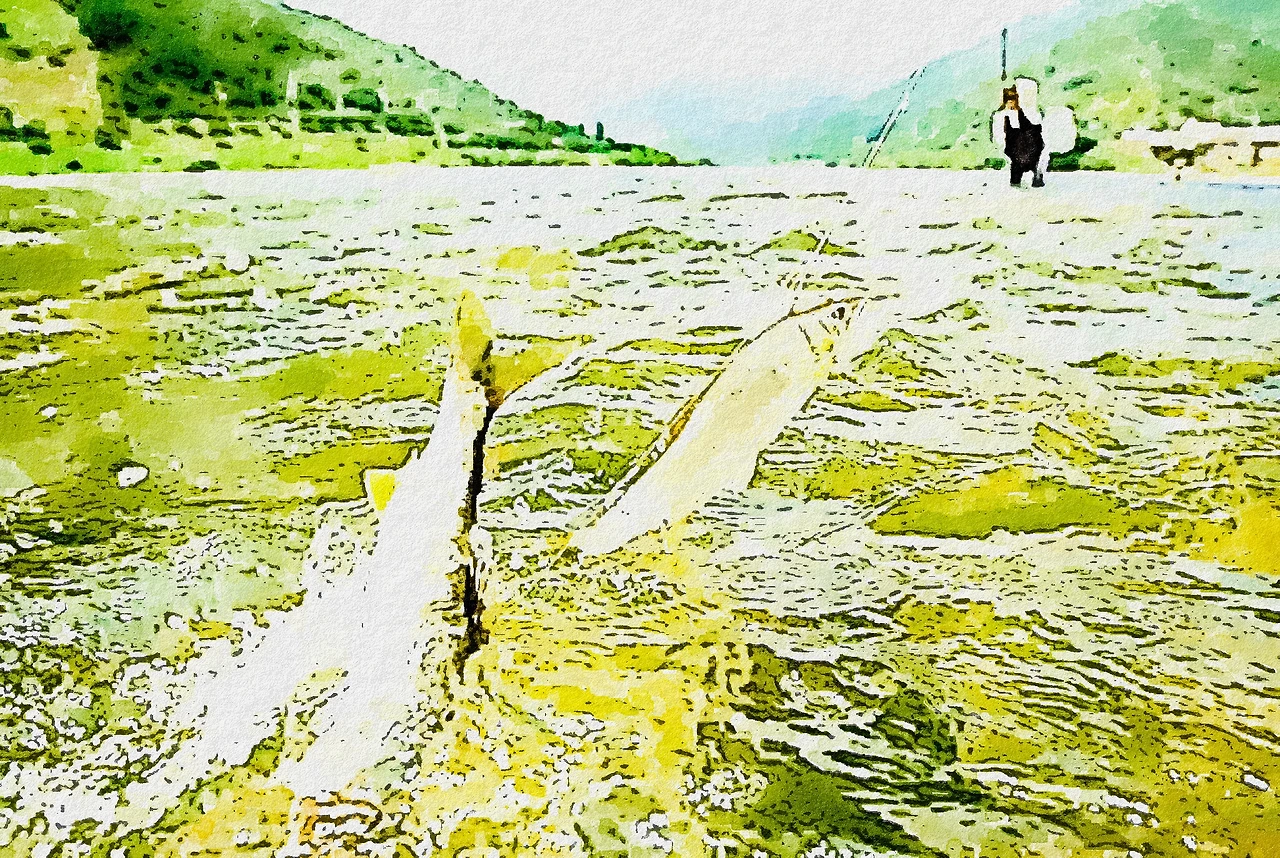 커다란 은어를 본 노인은 다른 은어들에게서 시선을 돌려 '은빛' 은어를 낚아챘지요.