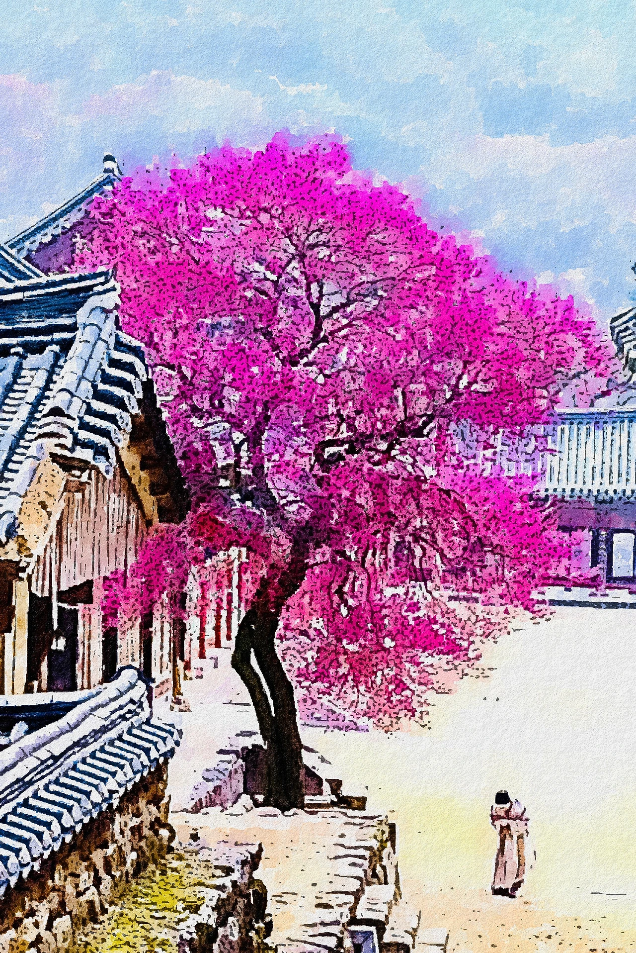 밤새 그 홍매화 꽃의 아름다움에 드리워지고 향기에 젖어서 다음날 아침이 되자