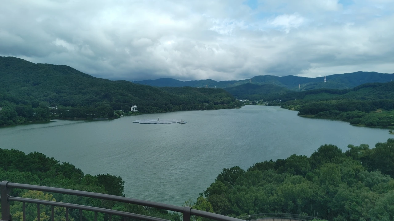 그렇게 달팽이처럼 빙빙 돌아서 호수가 내려다 보이는 전망대를 올라갔다 왔습니다
