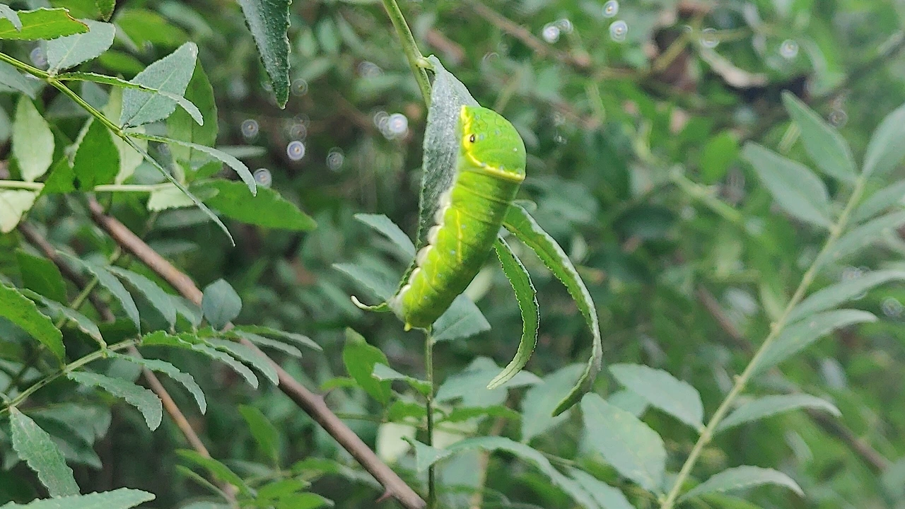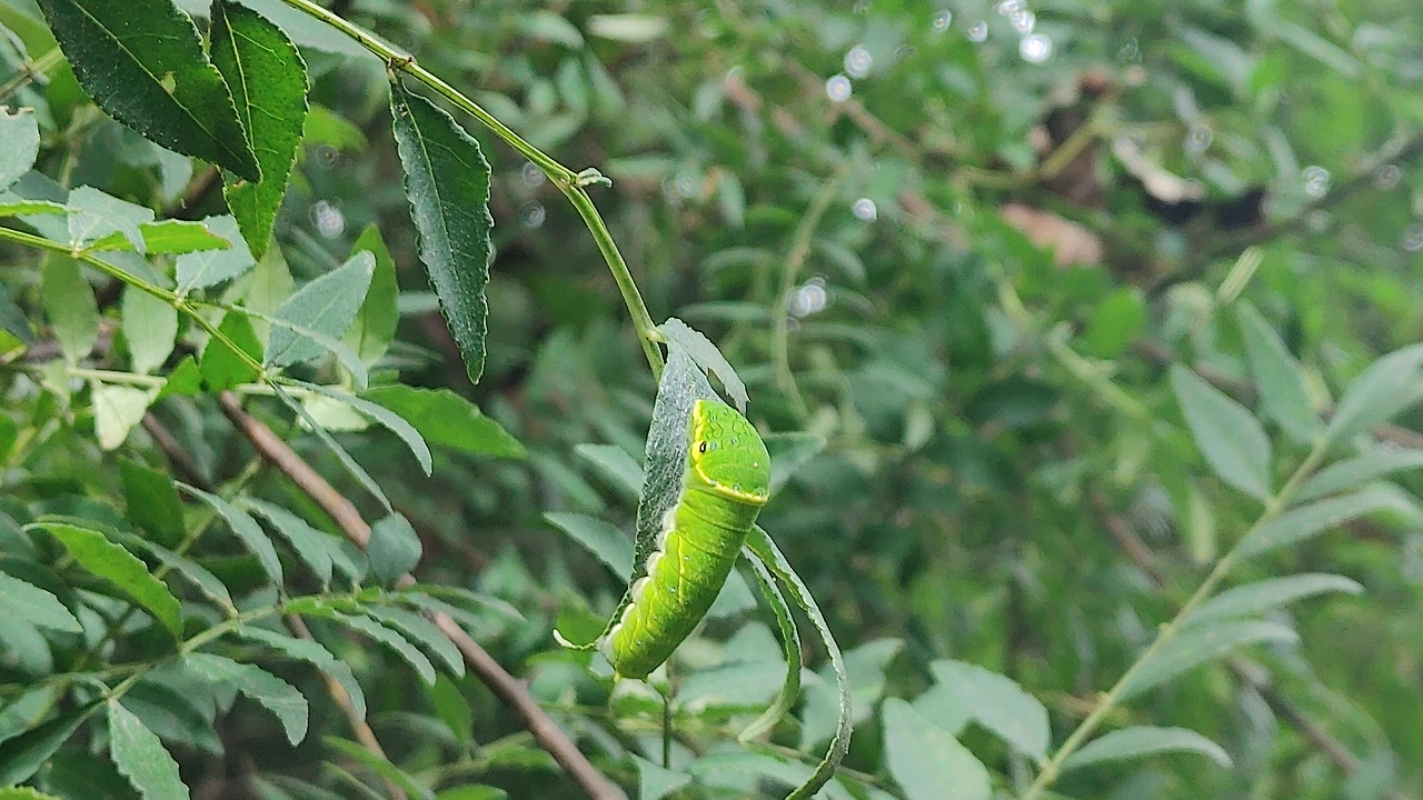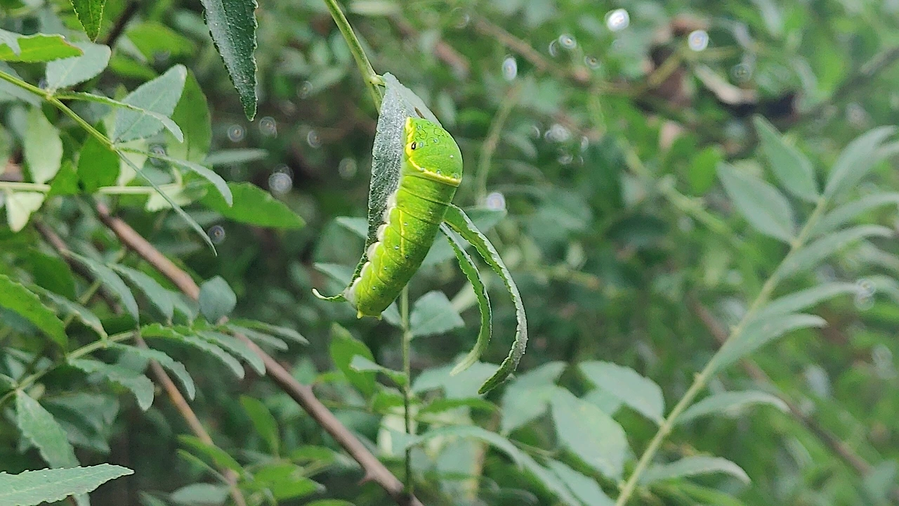 커다란 새가 산초나무로 날아들자 애벌레들은 본능적으로 잎사귀 뒷면으로 숨어들며 새를 피하였는데