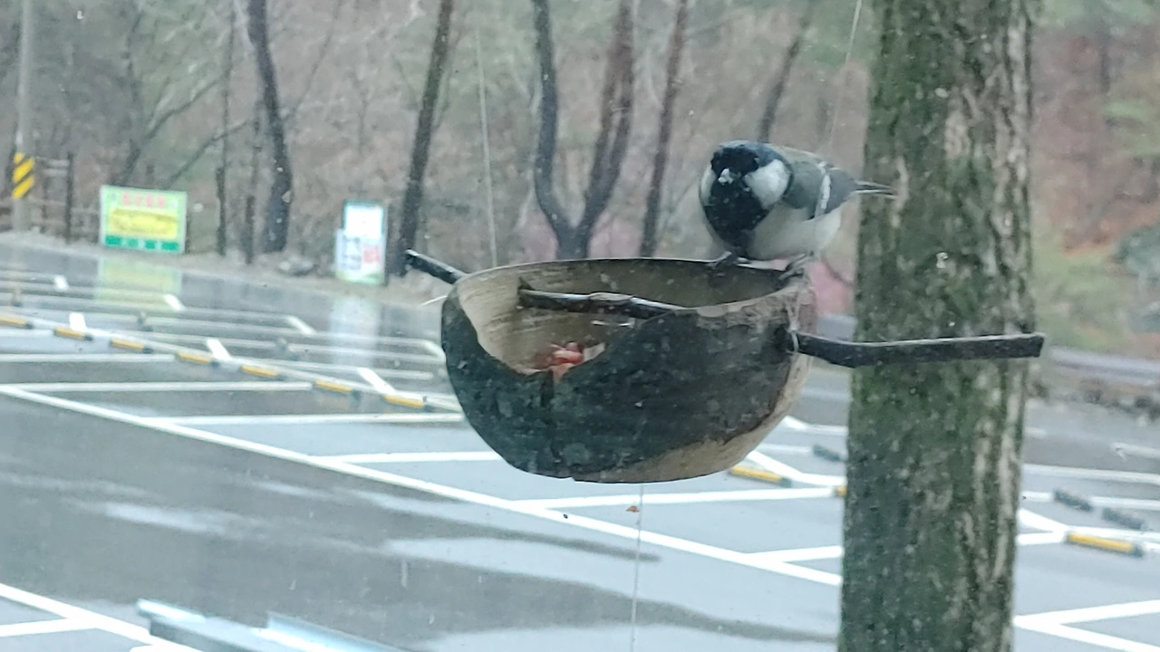 꼬비를 측은하게 생각한 멋스런 곤줄박이가 멘토가 되주었습니다.