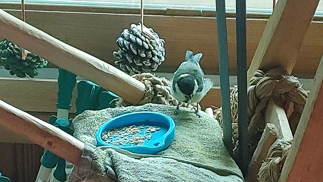 여기저기 똥을 싸놓고 깃털이 날리고 하여 꼬비는 새장에 갇히는 신세가 되었지요.