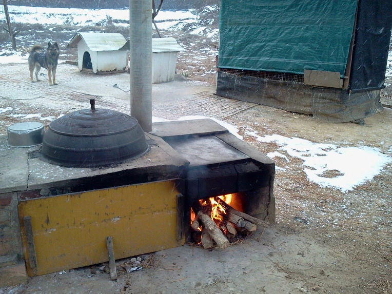 집 뒤켵 화목 보일러 있는 쪽에서 시커먼 연기와 함께 시뻘건 불길이 솟아 오르는 것을 보고 너무 놀라