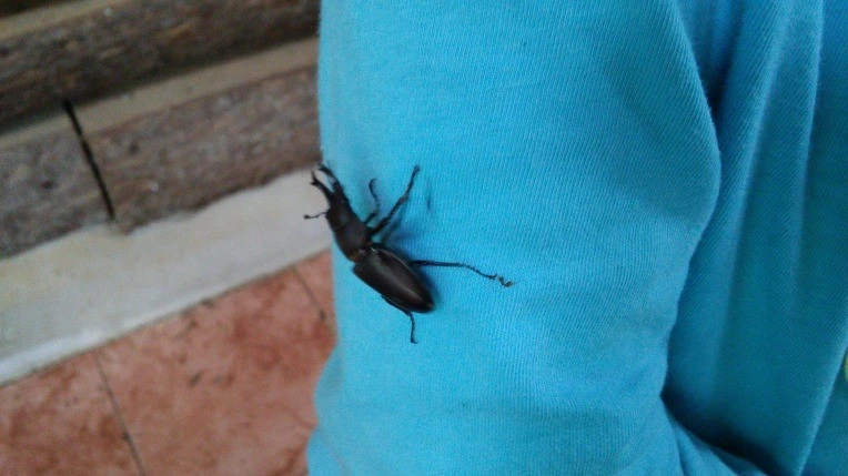 작은 사슴벌레를 들고 와서