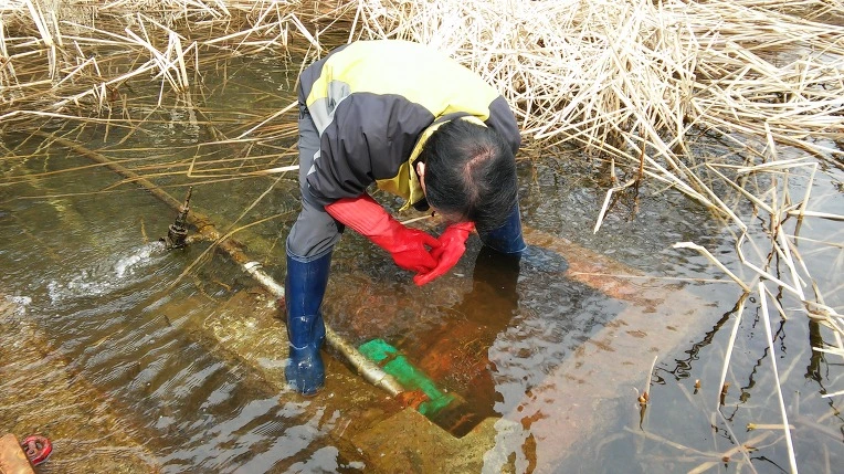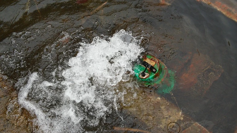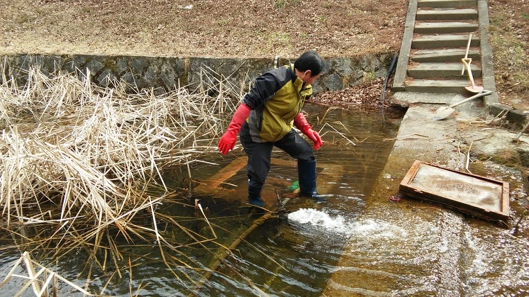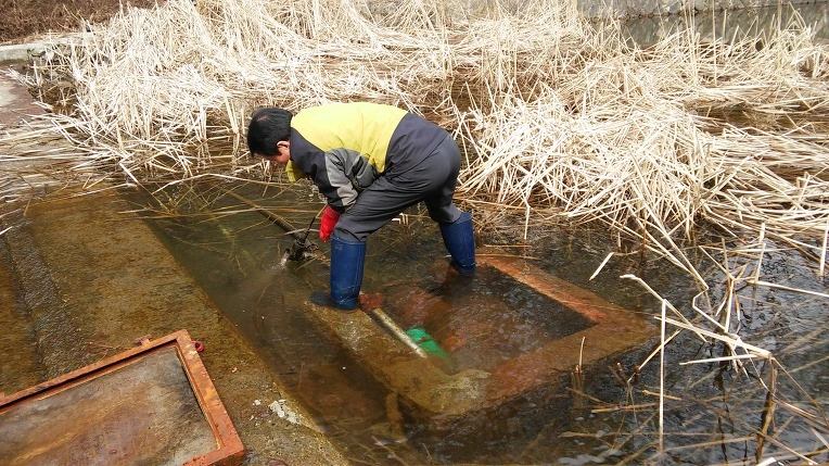 물속의 펌프를 점검하고 있지요...
