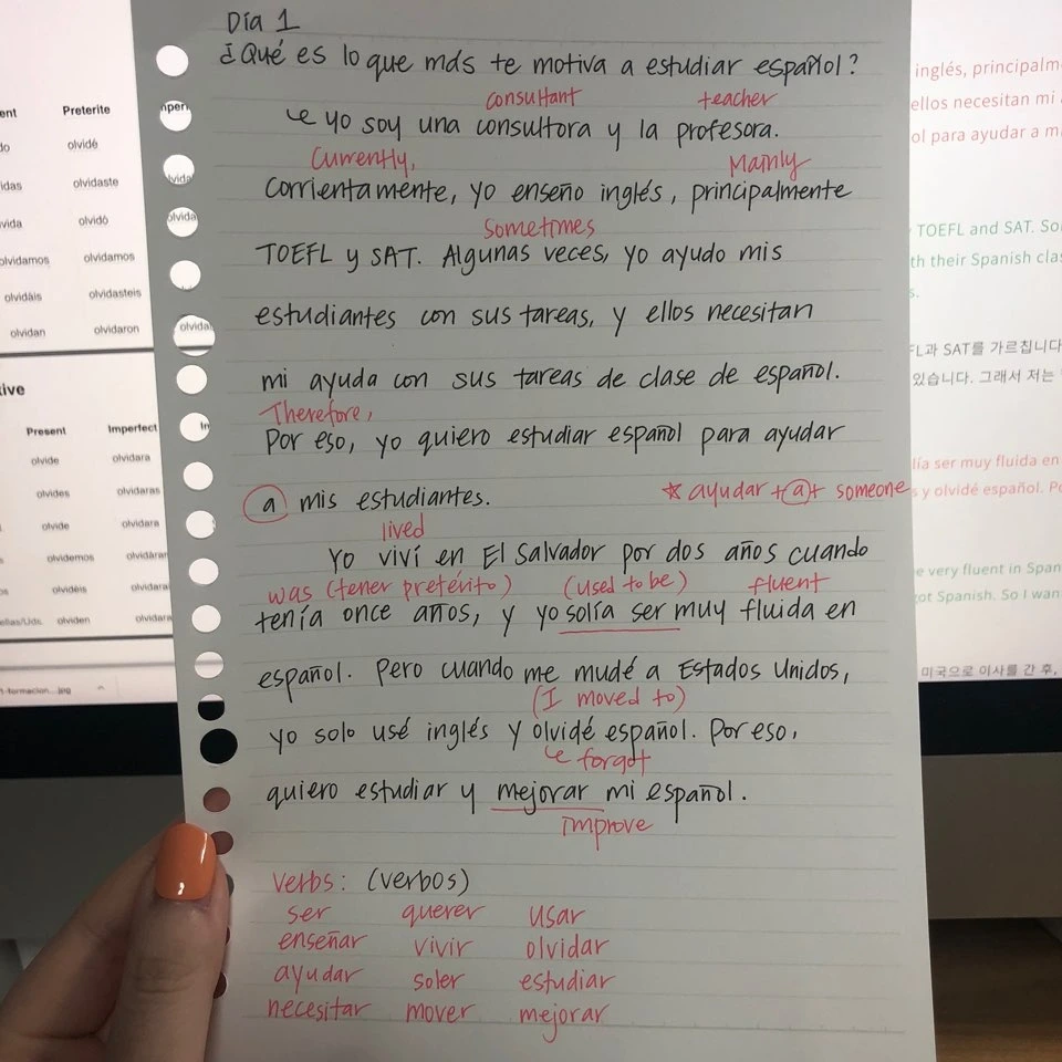 나는 평소에 내가 글을 처음 쓸 때 손으로 직접 적어서 writing을 연습한다.