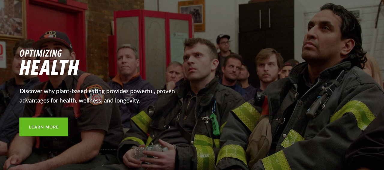 이 다큐멘터리에서 운동선수들 뿐만 아니라 우리네 삶에 가장 가까이 있는 영웅들인 소방관들도 실험에 참가하게 된다. 이유는 소방관이 일을 하다 순직하는 이유 중 가장 큰 이유가 67%를 차지한 "심장마비" 이기 때문이다. 소방관들이 심장마비에 걸리기 가장 쉬운 위치에 있는 이유는 그들 역시 "고기 = 힘"이라는 공식을 맹신하고 있고, 에너지를 더 만들어 내기 위해 육류 위주의 식단으로 평생을 살기 때문에, 높은 콜레스테롤로 인해 동맥이 탁해지기 때문이다. 심장마비 리스크를 조금이라도 줄이고자 채식 위주의 groceries가 그들에게 지급되었고, 건강하게 먹은 그들의 동맥 상태는 정말 놀라웠다 -- Before/After 사진을 보고 나는 경악을 금치 못했다. 육류 위주로 먹었을 땐 정말 탁했던 동맥이 -- 과연 저기로 피가 왔다 갔다 할 수나 있을까 싶을 정도로 탁했다 -- 동그란 구멍이 뻥 뚫린 것처럼 깔끔해진 것이다.