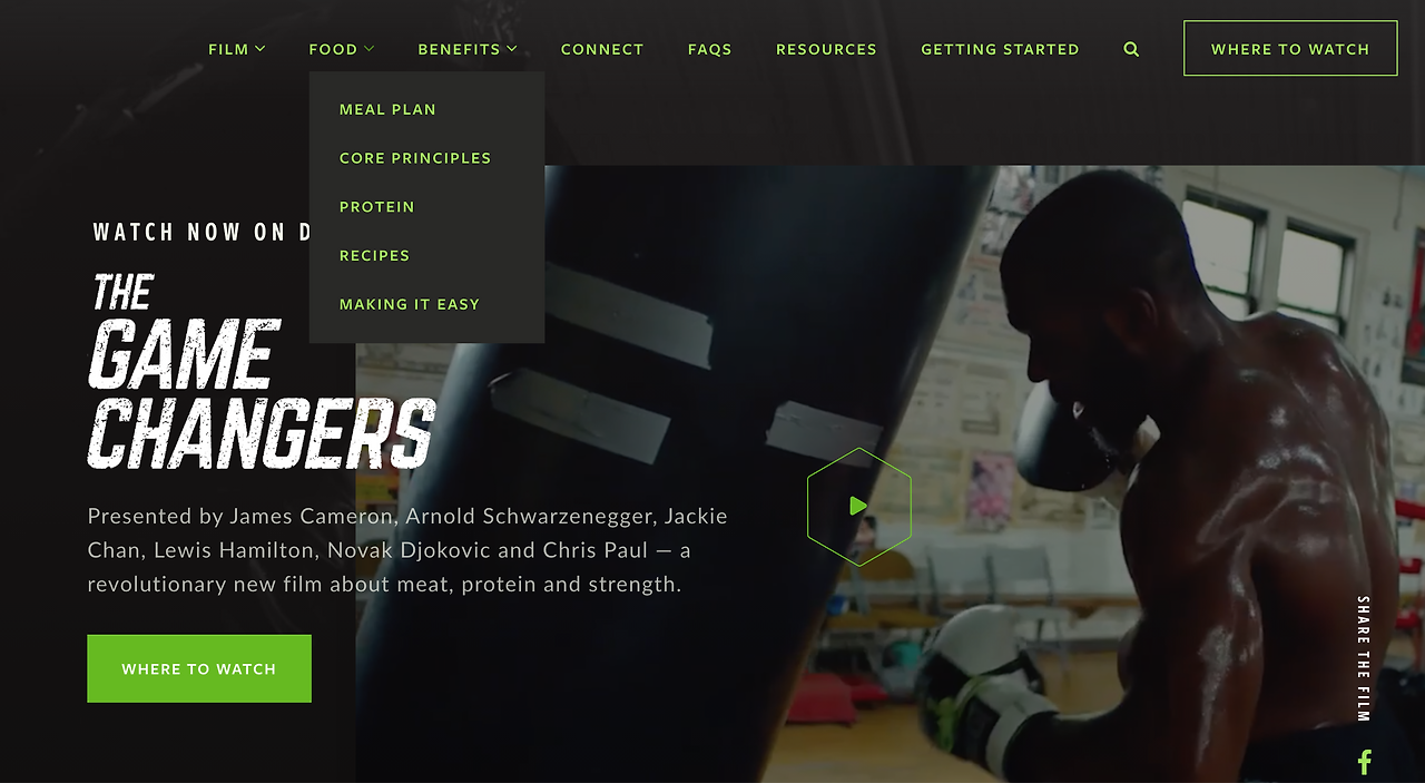 서비스로 치면 Warranty까지 톡톡하게 해주고 있는 셈이다. 이렇게 까지 꼼꼼하게 홈페이지까지 만들어서 사람들에게 채식의 중요성을 알리고 있는 Game Changers. 다시 한번 감탄했다.